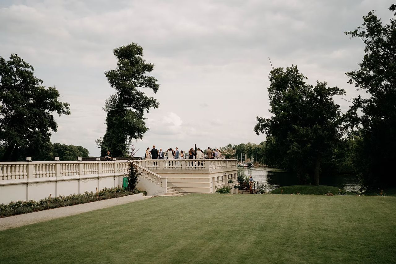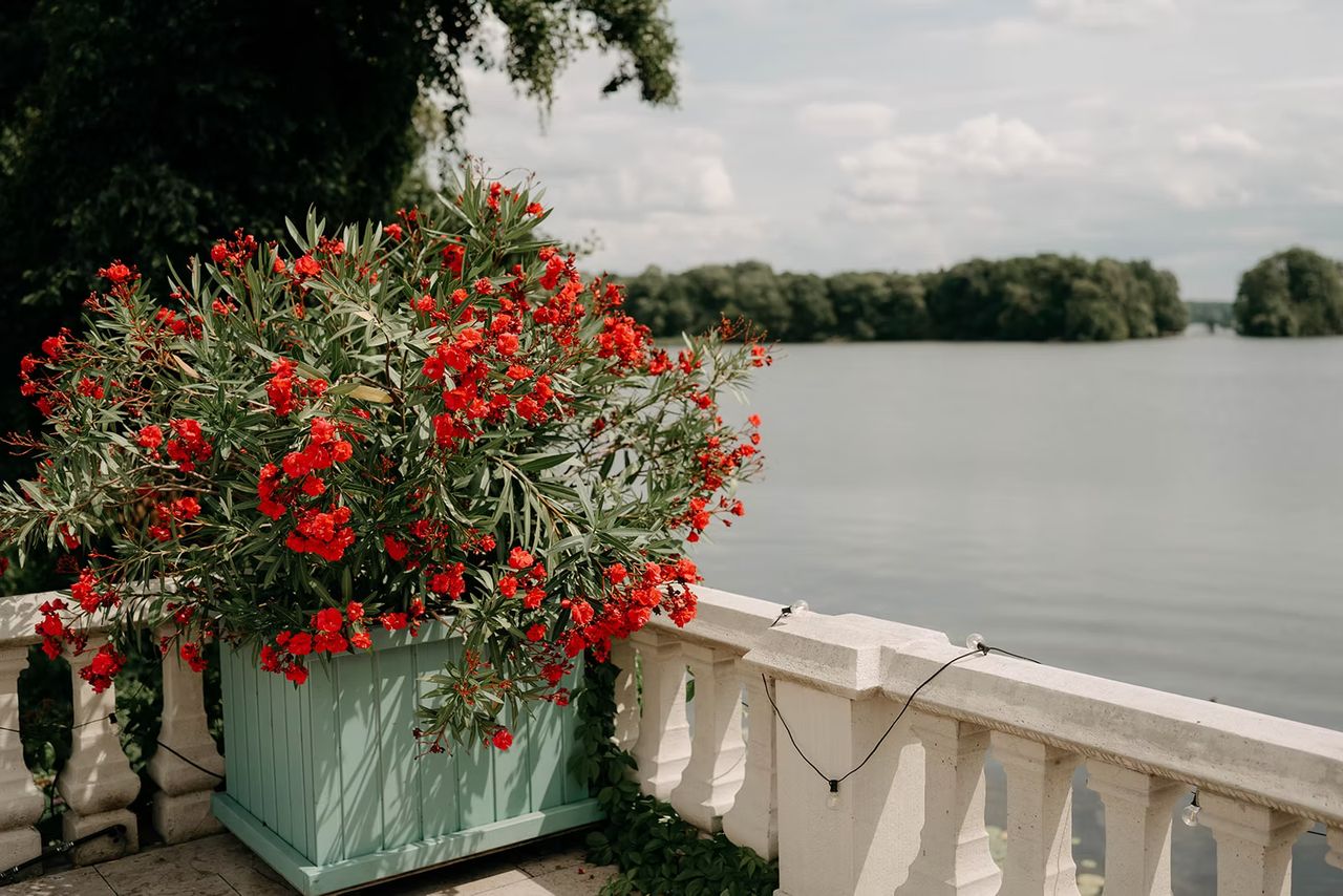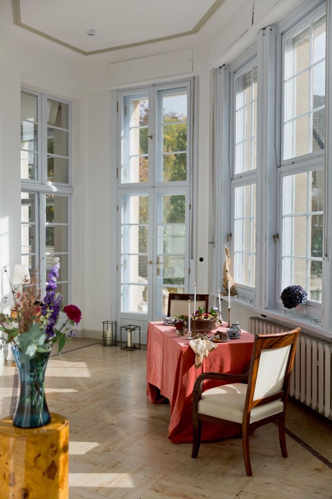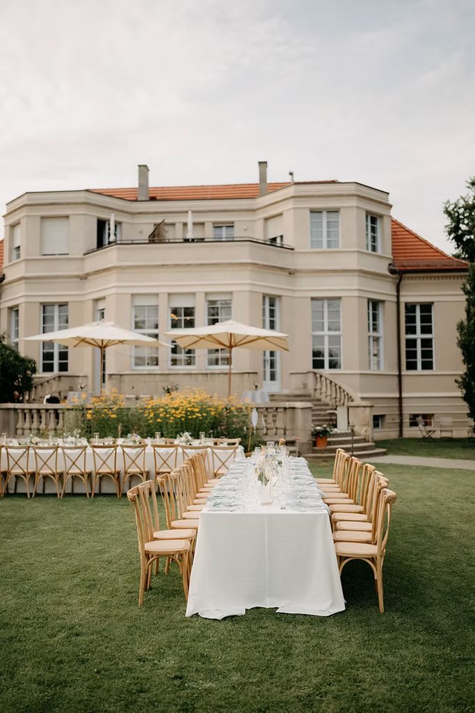 Die Villa steht in einer malerischen Umgebung direkt am Lehnitzsee und schafft so eine naturnahe, zugleich stilvolle Kulisse.