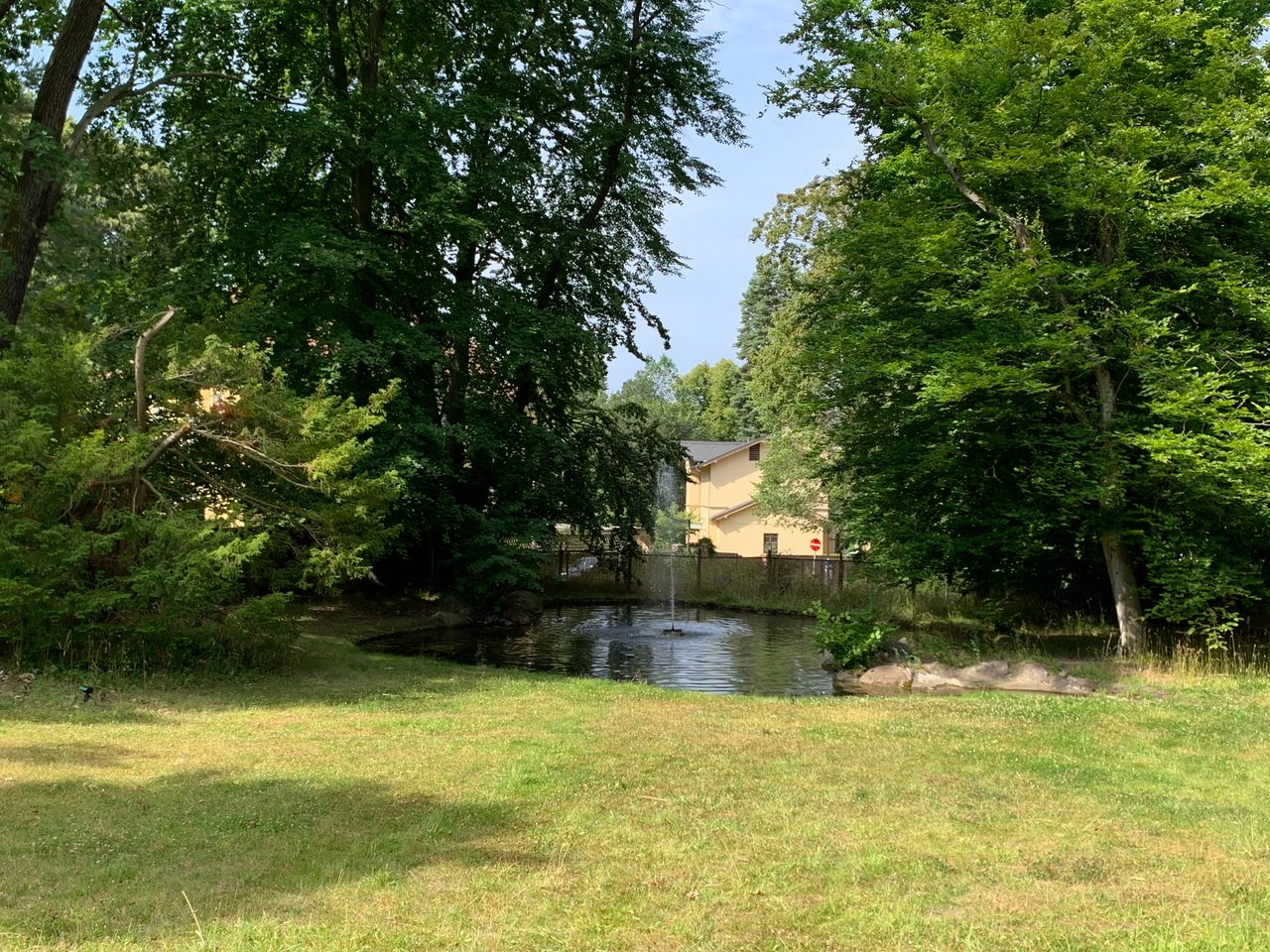 . Springbrunnen und Teich mit Wasserfontäne