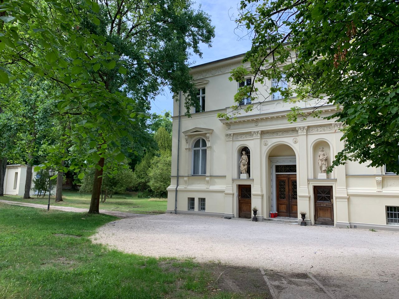 Es befindet sich zudem noch eine Remise gegenüber der Villa, die ebenfalls angemietet werden kann, entweder als Motiv oder für Produktionsräume mit eigenem Bad/WC/ Stromanschlüssen. Zu dem Ensemble gehört noch der "Afrikanische Pavillion" sowie ein Gerätehaus mit Eingangstor, das derweil als Werkstatt dient.