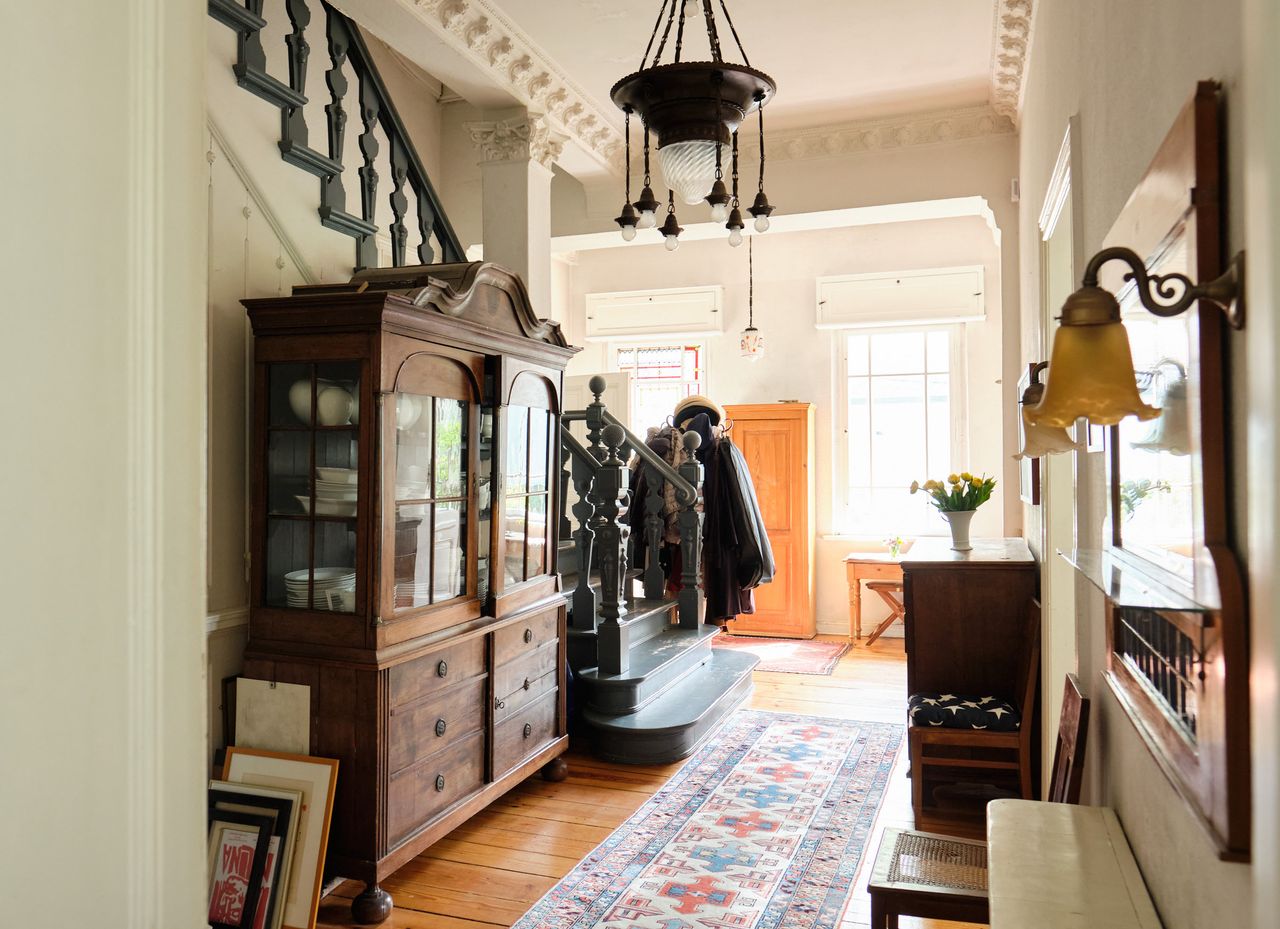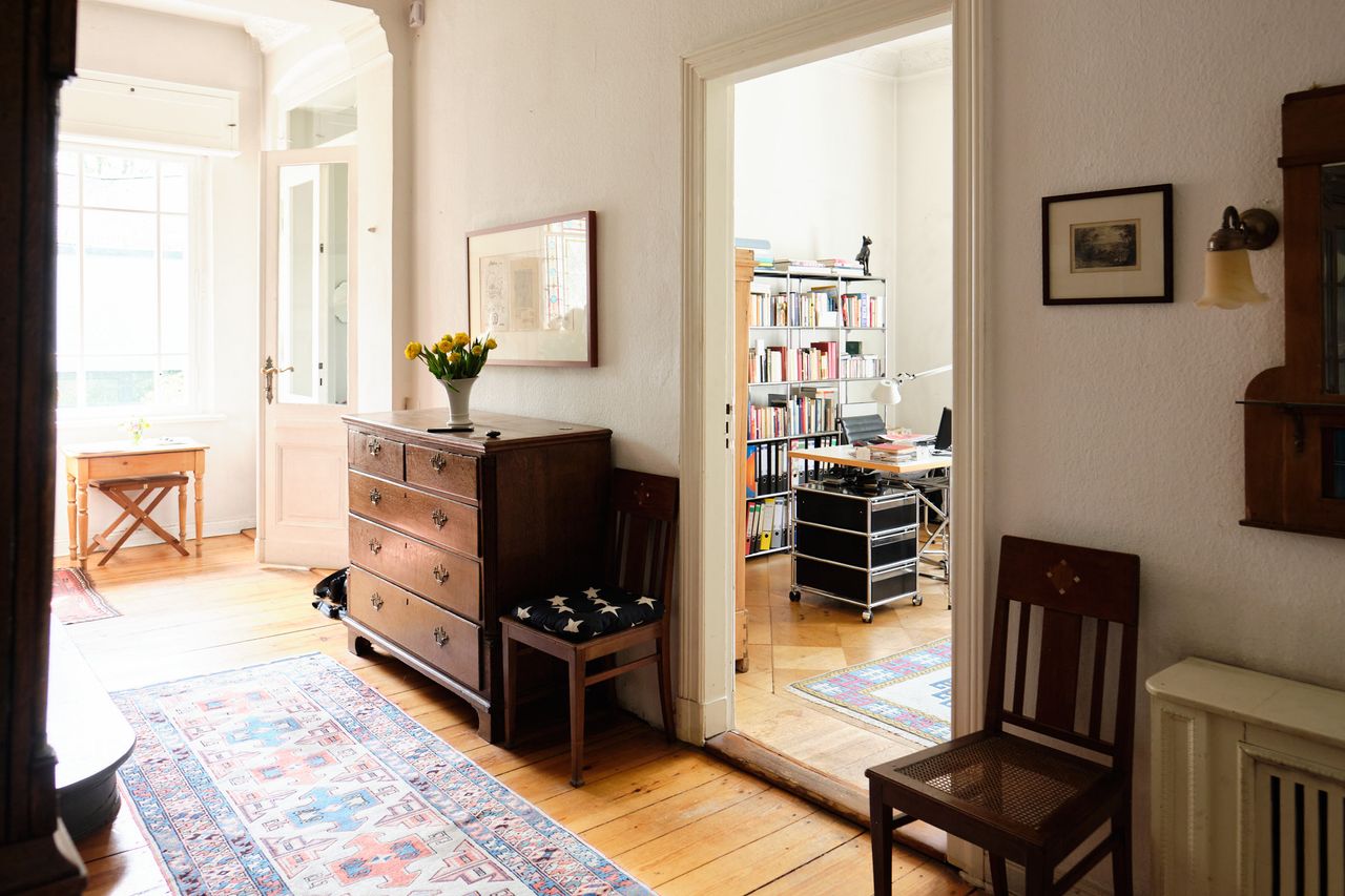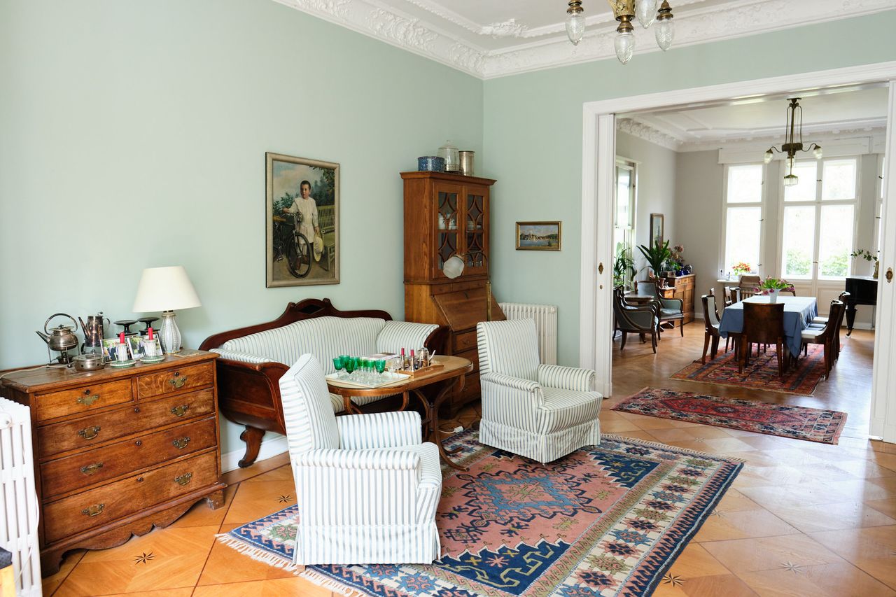 Nicht nur der ungewöhnliche Wintergarten mit seinen buntverglasten Hebefenstern sondern die Villa insgesamt ist behutsam renoviert. Außer den alten Dielen und Fliesen, z. B. in der Küche und im Wintergarten haben wir im Dachgeschoß Schloßdielen verwendet.. Alle Originalbeschläge, Fenster und Türen sowie Stuckelemente sind intakt.