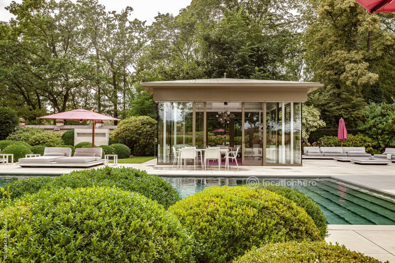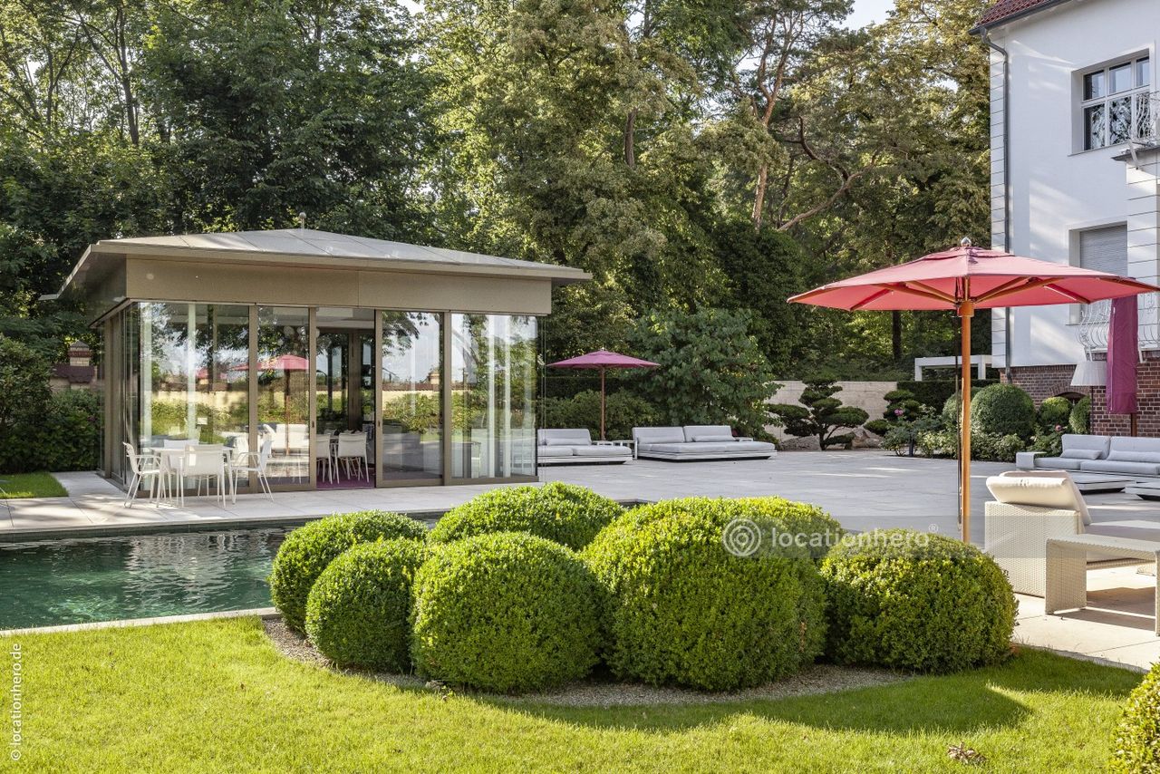 Exklusives Anwesen in Berlin mit besonderer Gestaltung der Wohnräume und des Außenbereiches. Pool und Haus sind auch separat anmietbar.