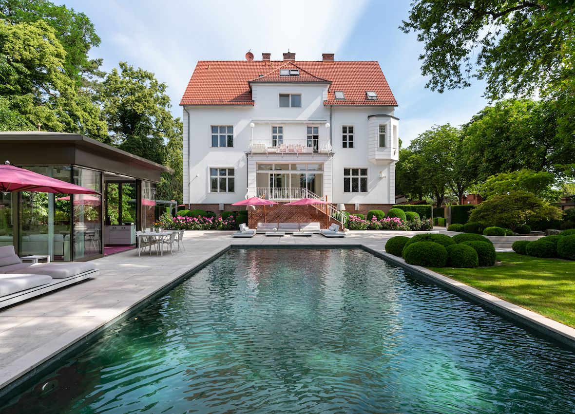 Nur 400 Meter vom Water Tower Studio entfernt liegt eine prächtige, denkmalgeschützte Jugendstilvilla, die stilvolle Eleganz und höchsten Komfort in einem einzigartigen Ambiente vereint. Sie gehört zu den exklusivsten Outdoor-Locations in Berlin.