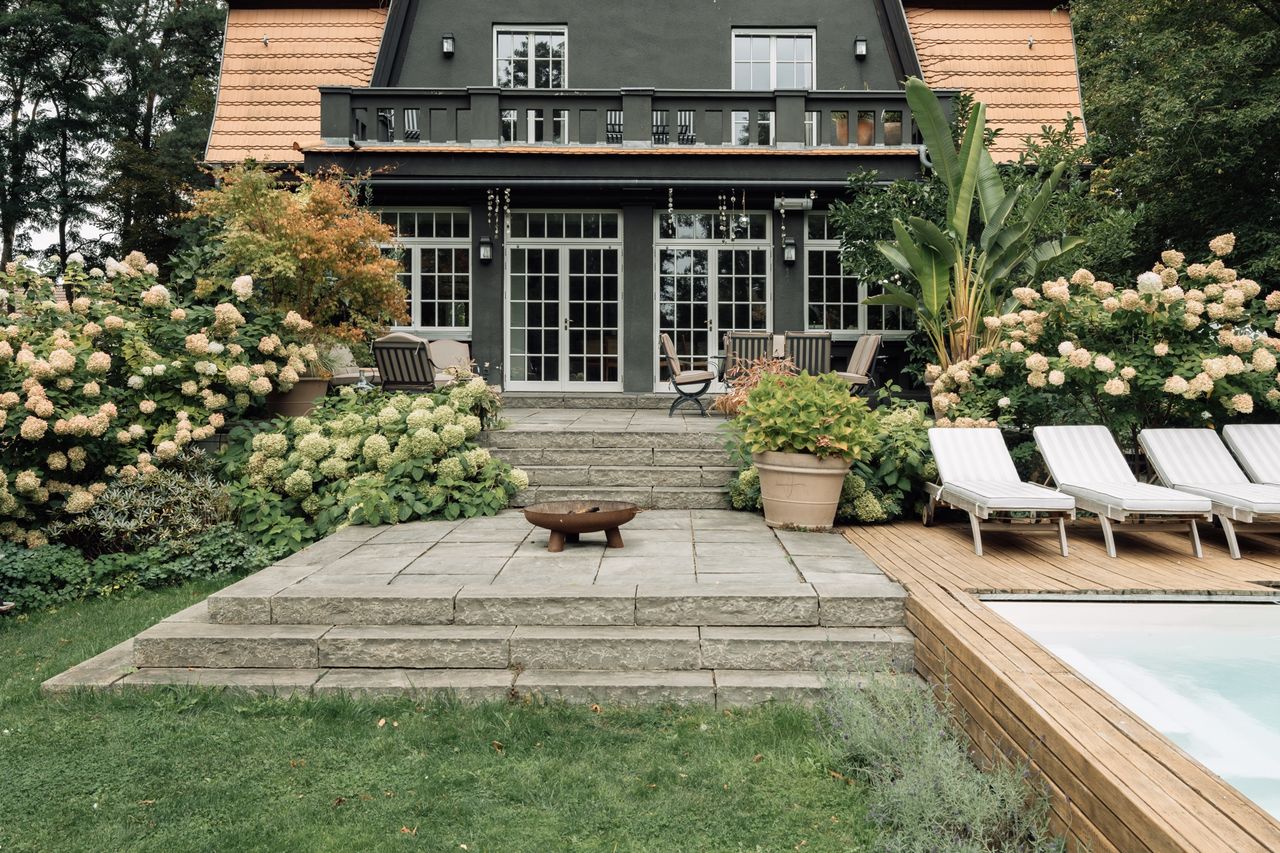 Zum Grundstück gehören neben der Terrasse und dem Pool auch ein Spielplatz, ein Steg mit direktem Seezugang (Seegrundstück) sowie ein altes Bootshaus. Die Außenflächen bieten verschiedene Blickachsen und naturnahe Motive.
