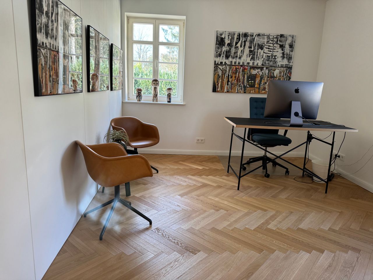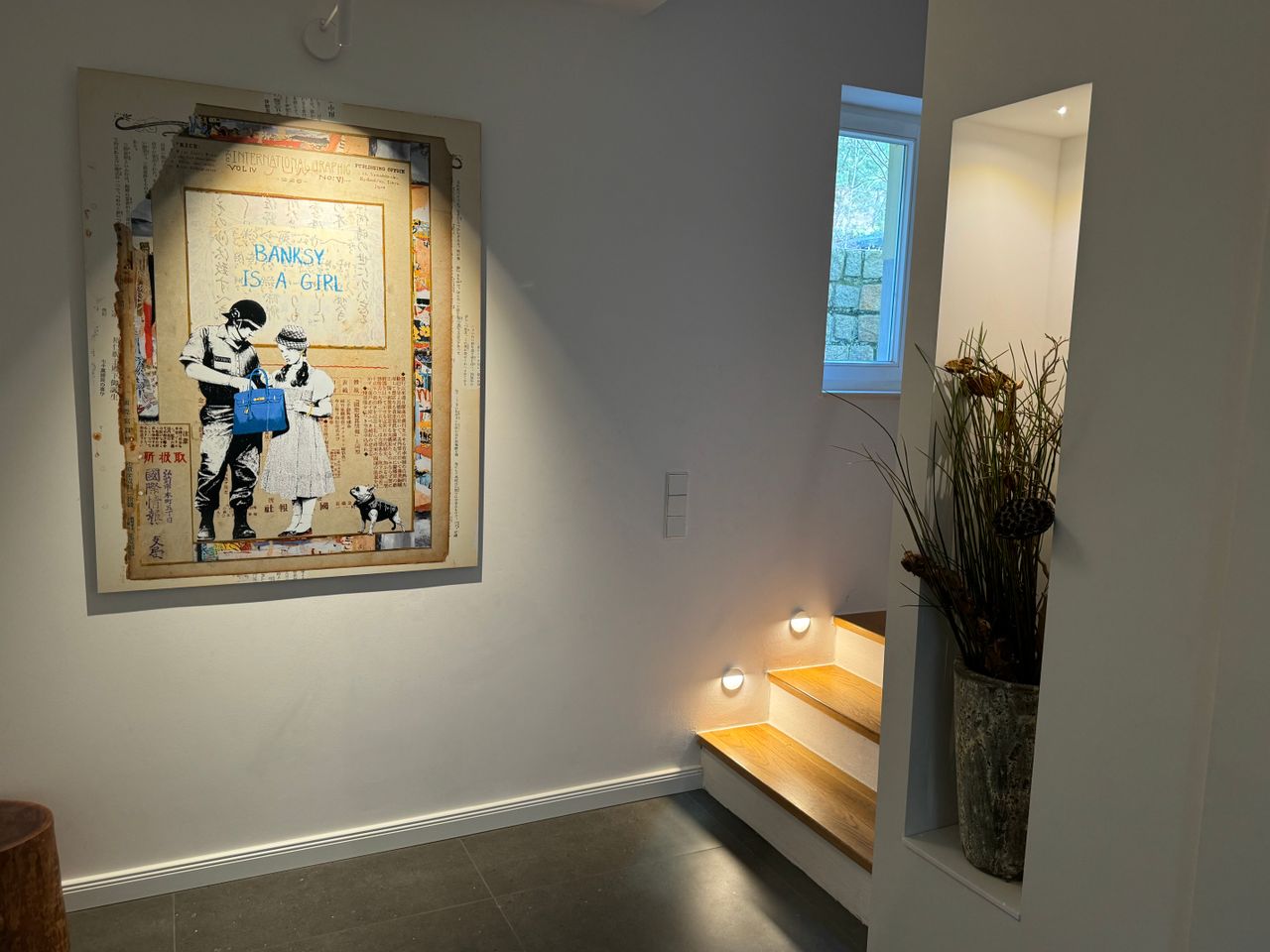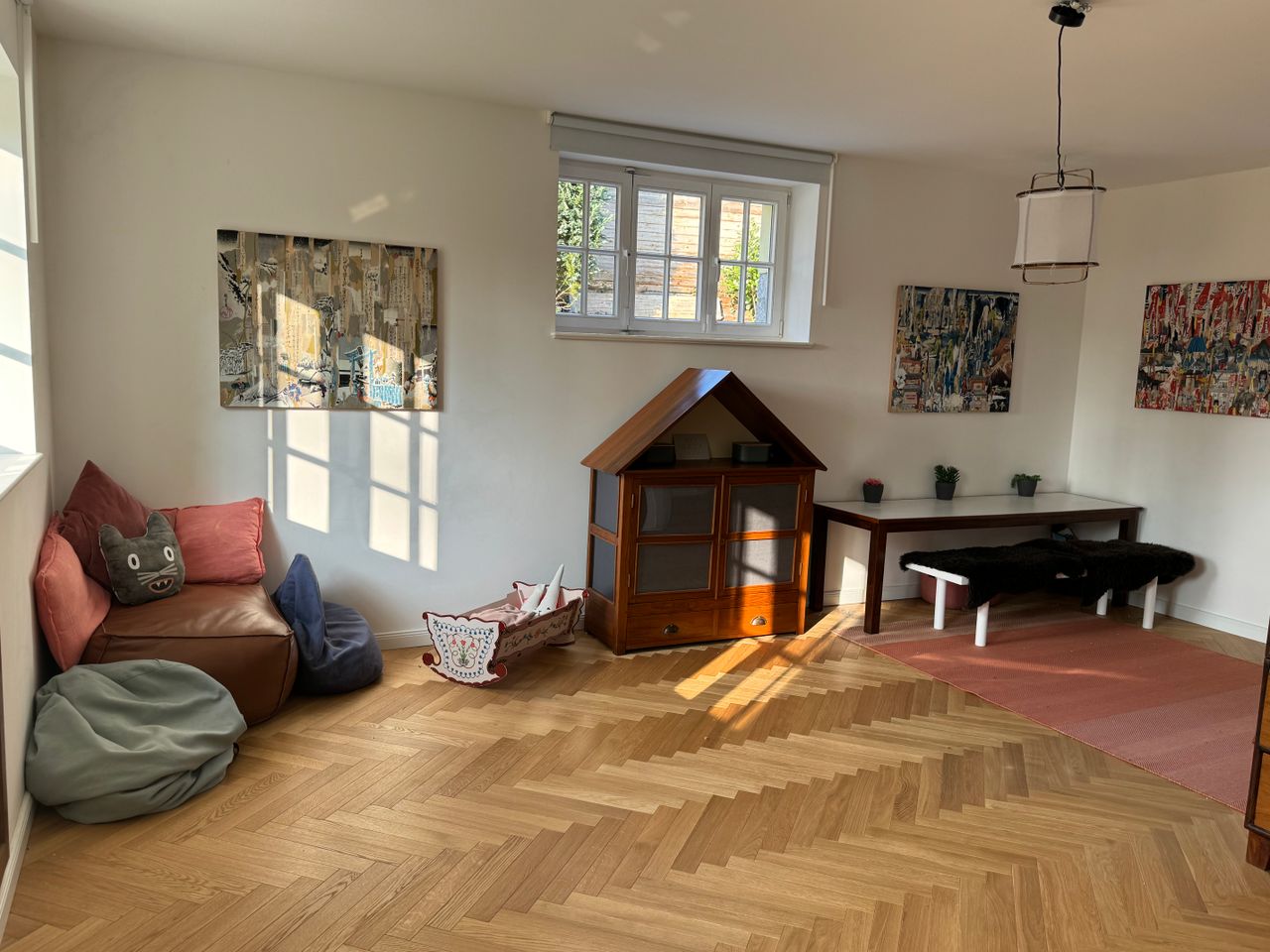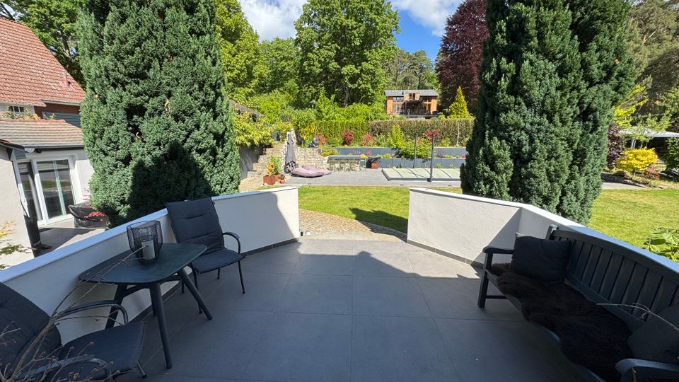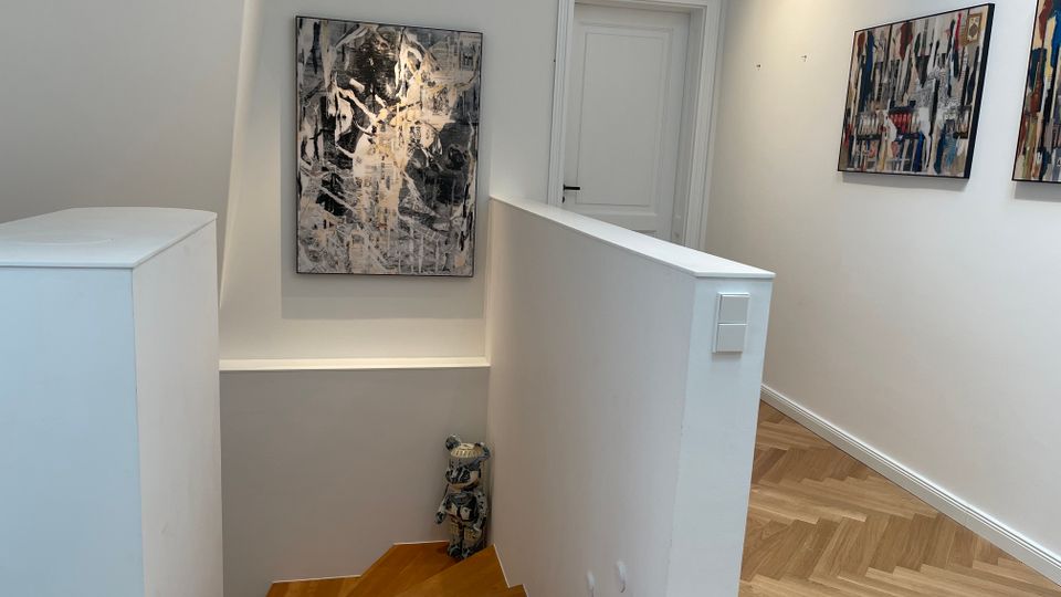 Bei dem Haus handelt es sich um eine wunderschöne Villa von 1926, die Mitte/ Ende 2022 kernsaniert wurde. Außen mit altem Charme, innen urig, modern. Es existieren insgesamt 3 Kinderzimmer - ein Jugendzimmer (Junge), ein Kinderzimmer (Mädchen) und ein Kinderzimmer (Junge). Die Bäder sind auf alle drei Stockwerke verteilt. Das oberste ist ein Wellnessbad mit Sauna und großer Badewanne, in der Mitte befindet sich das Gästebad und ganz unten ein großes Duschbad. Zwei der Toiletten sind mit elektrischen Toiletten aus Japan ausgestattet mit Sitzheizung, Föhn und Bidet. Im mittleren Stockwerk befindet sich ein. Großer Wohn-Essbereich mit moderner Küche und Steinmittelinsel. Von diesem Bereich gehen zwei Balkone ab. Des Weiteren gibt es auf dieser Etage zwei Homeoffices und einen Eingang zum hinteren Garten. Im hinteren Garten befindet sich ein altes Kutscherhaus, dass zum Gästehaus umgebaut worden ist und ein Edelstahl-Swimmingpool. Die Gartenanlage wird von Mitte April bis Ende Juni 2023 fertig gestellt.