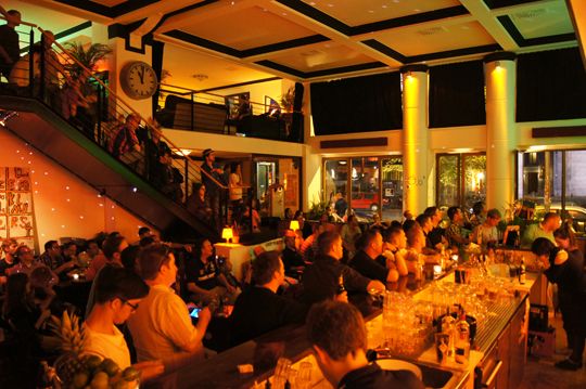 Die Volksbar ist ein gemütlicher Ort der zum relaxen zwischen internationalen Gästen einlädt.
