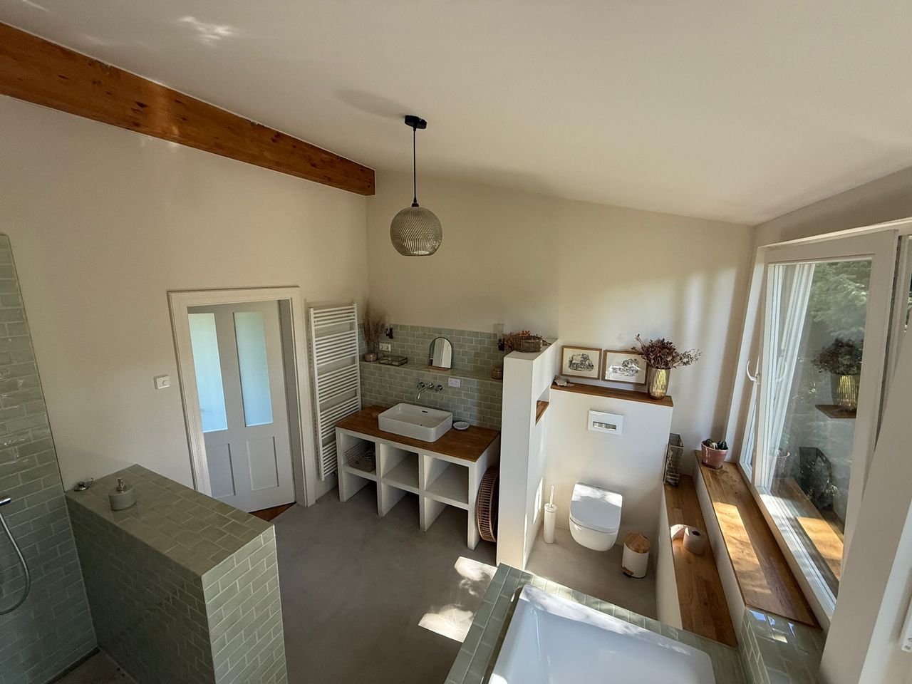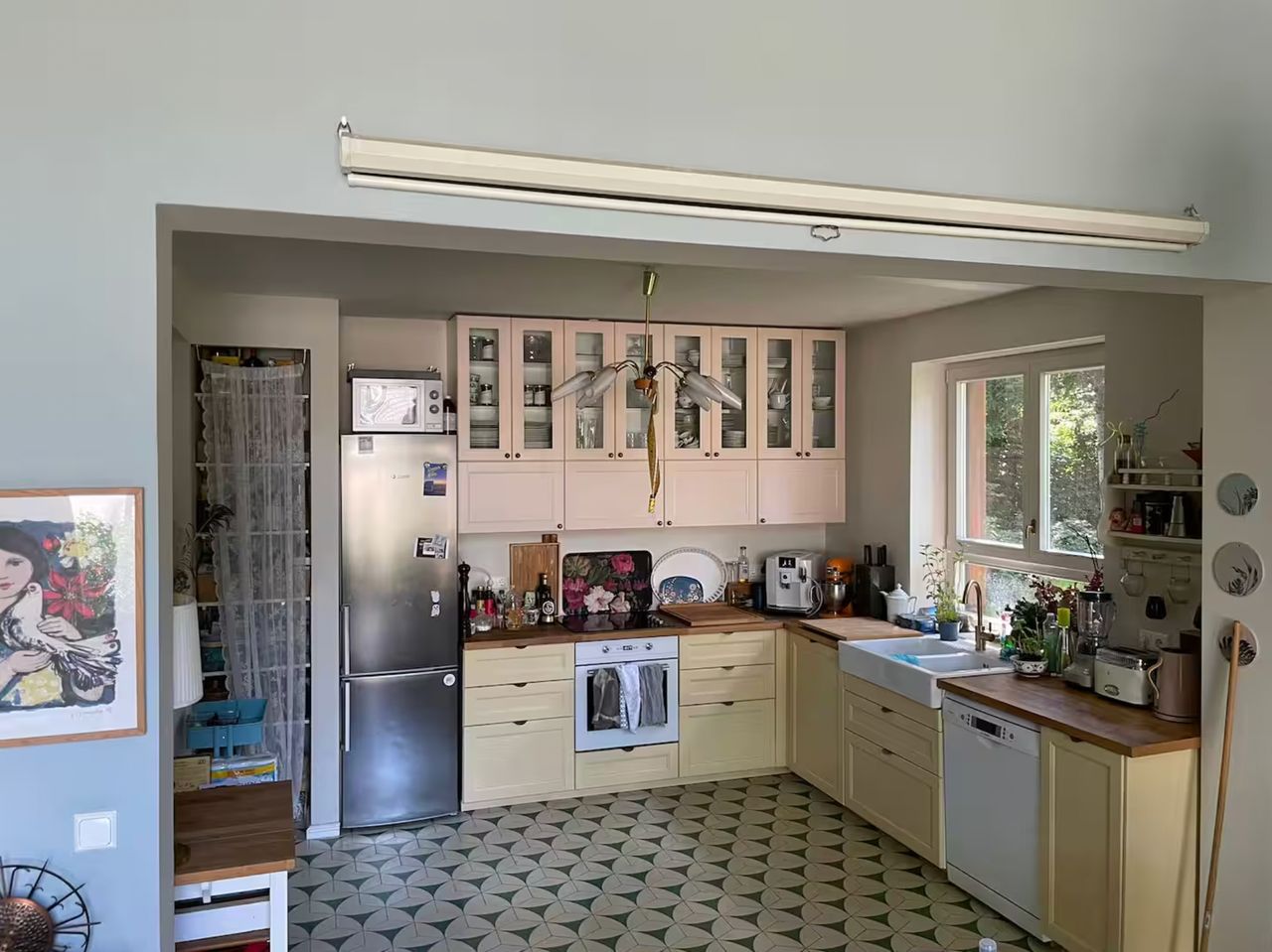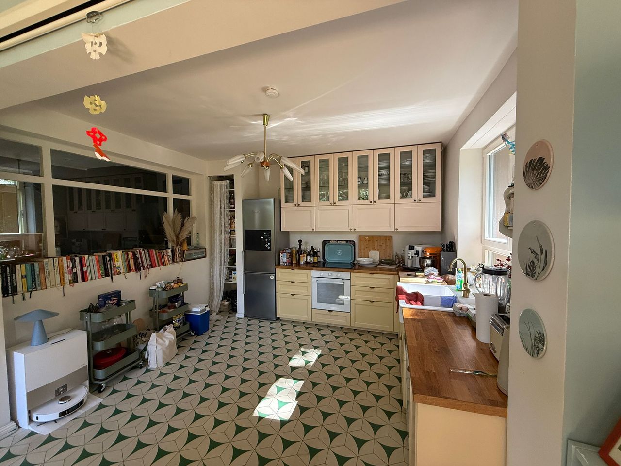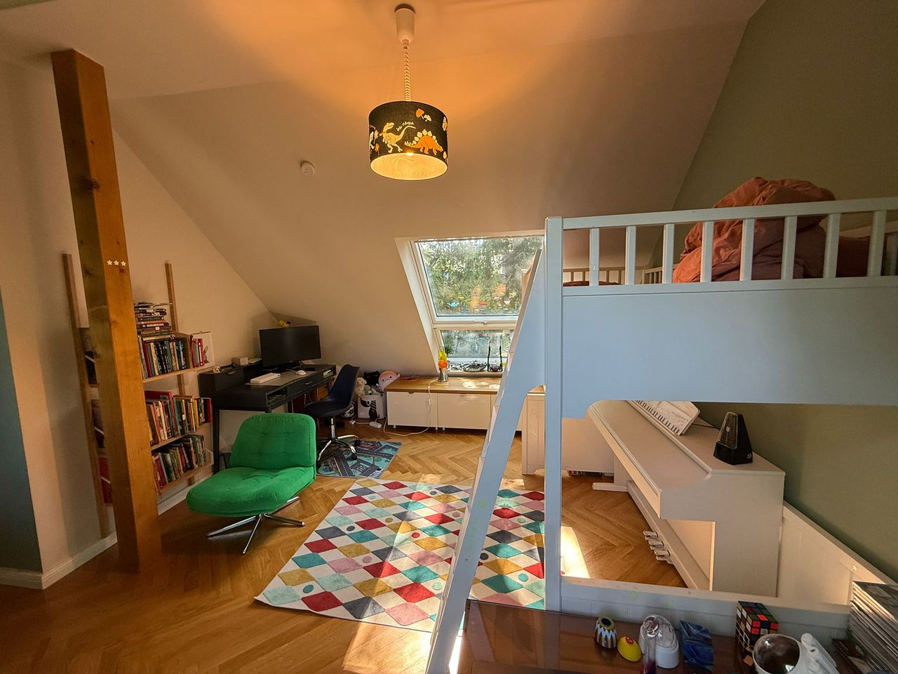 Lichtdurchflutetes Einfamilienhaus mit Satteldach, heller Gaube und umlaufendem, eingewachsenem Garten. Das Herzstück ist ein großzügiger Wohn-/Essbereich mit sehr hoher Decke und einer raumhohen Fensterfront zum Grün – ideal für Daylight-Drehs, Familien-Szenen, Werbe- und Interior-Shootings. Mid-Century-/ BauhausMobiliar, Eichen-Fischgrätparkett und sanfte Wandfarben erzeugen eine warme, skandinavische Atmosphäre. Highlights Riesige Fensterfronten zum Garten, mehrere Schiebe-/Terrassentüren Sehr hohe Decken (Kathedraldecke) im Wohnraum, zusätzliche Dachgaube Authentisches Mid-Century-Setting: Ecksofa in Senfton, Design-Stühle, Sideboards, Vitrinen, Bücherwand Heller Eichenparkettboden im Fischgrätmuster Umlaufender, blickgeschützter Garten mit alten Bäumen, Rasenflächen und Terrasse Grundrisse/Schnitte vorhanden (EG & DG) – klare Achsen und gute Stell- und Riggingmöglichkeiten Räume & Motive Wohn-/Essbereich: Offener, sehr weiter Raum mit großem Esstisch, Lounge-Ecke, Coffeetable; mehrere Blickachsen in den Garten. Küche: Separat gelegen, anschließbar an den Flur und den Wohnbereich. Schlaf-/Arbeitszimmer: Mehrere Zimmer auf EG und DG (siehe Pläne), neutrale, wohnliche Optik. Bäder: Tageslichtbad im Dachgeschoss (Wanne), weiter(es) Bad im Erdgeschoss. Flure/Treppenhaus: Geradlinige Wegeführung, Holz und Weißtöne. Dach & Fassade: Satteldach mit großem, modernem Zwerchgiebel, Holzverschalung – charmante Außenmotive. Außenbereich Große Rasenflächen, Terrassenbereiche und natürliche Schattenzonen durch hohe Bäume Ruhige, grüne Umgebung; Haus liegt gut eingebettet im Garten – Privatheit für Team & Cast Licht & Akustik Weiches, gefiltertes Tageslicht durch die Bäume; durch die bodentiefen Fenster ganztägig sehr gute, gleichmäßige Ausleuchtung Ruhige Lage, angenehme Raumakustik (Vorhänge, Polstermöbel, Bücherregale) Logistik Direkter ebenerdiger Zugang zum Wohnraum über die Terrassentüren – ideal für Equipment und Möbelfahrten Ausreichend Stellflächen im Garten für Technik, Maske/Styling und Basecamp (nach Absprache) Mobiliar kann – schonend – nach Absprache umgestellt werden. Strom über Haushaltsanschlüsse; zusätzliche Absicherung nach Bedarf möglich. Looks & Genres Familienidylle, skandinavisches Design, Künstlerhaus/Atelier-Vibe, 60s/70s-Reminiszenz, Natur-Rückzugsort, stilvolle Werbemotive (Home, Food, Interior, Lifestyle). Hinweise Bitte Begehung/Tech Recce vorab. Schutz von Parkett und Gartenflächen (Boden-/Rasenschutz) erwünscht. Haus regennass- und nächtetauglich; Nachtstimmungen lassen sich durch die große Fensterfront wirkungsvoll inszenieren.