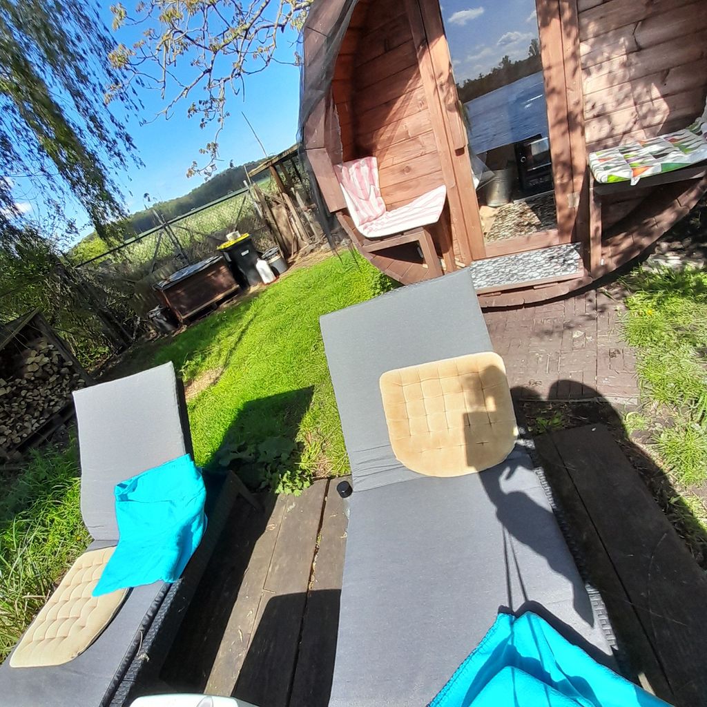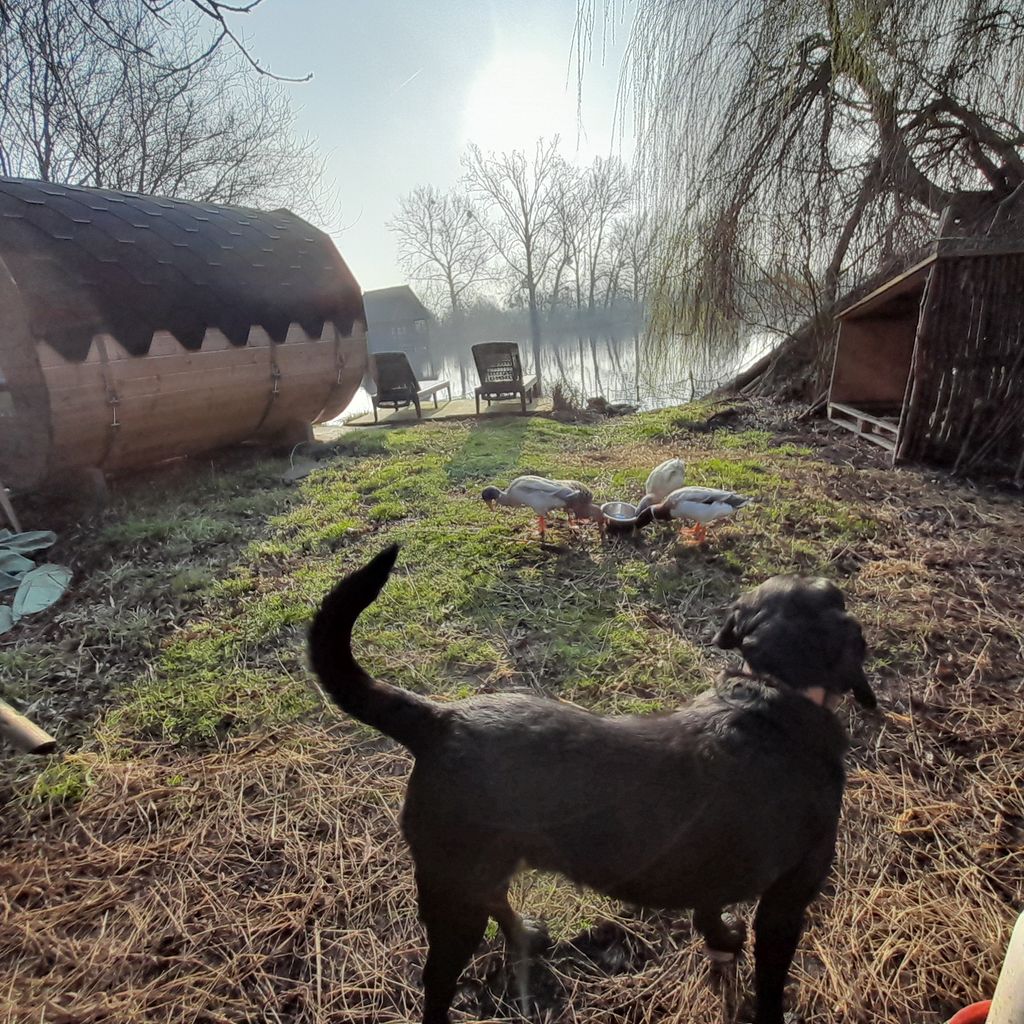 Es gibt ein Kajak, ein Ruderboot und einen kleinen Steg. Es befindet sich ferner ein Laufentenstall auf dem Grundstück, die 8 Laufenten sind größtenteils handzahm und freilaufend in Symbiose mit den 2 Hunden und Katzen.
