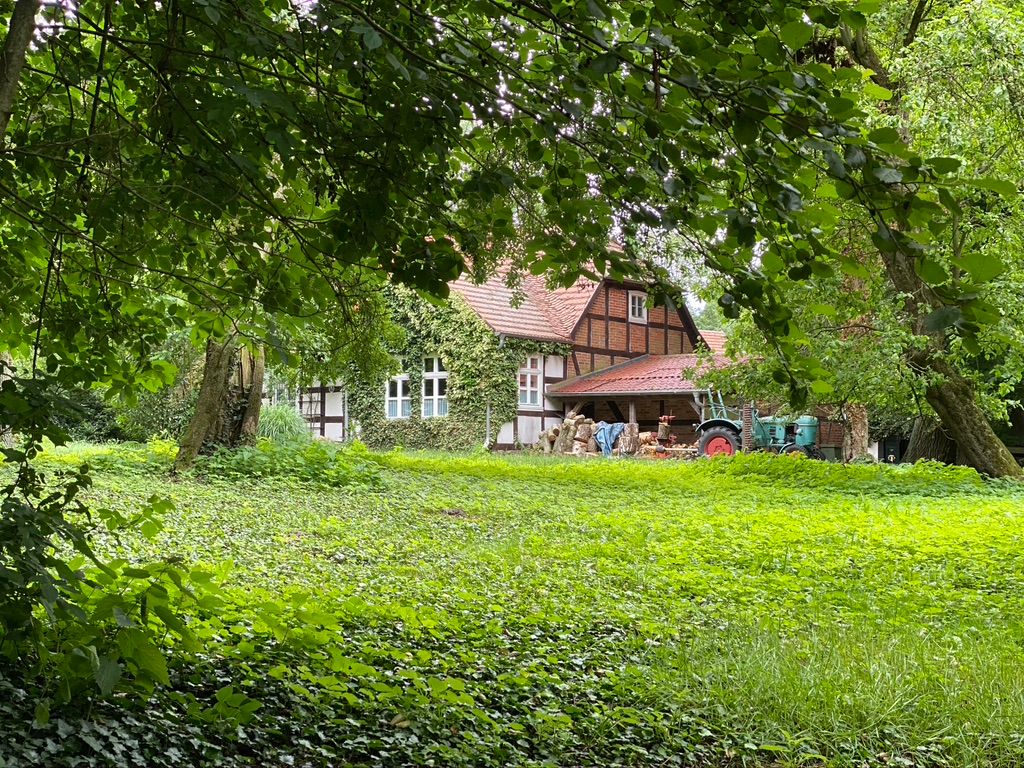 Es handelt sich um eine denkmalgeschützte Fachwerk-Wassermühle, ein Fachwerk-Wohnhaus und eine Fachwerkscheune an dem Flüsschen Kümmernitz. Großes Grundstück in Alleinlage. Alles sehr romantisch. Großer Garten, schöne Auffahrt, Wiesen, Wald und Bäume drumherum