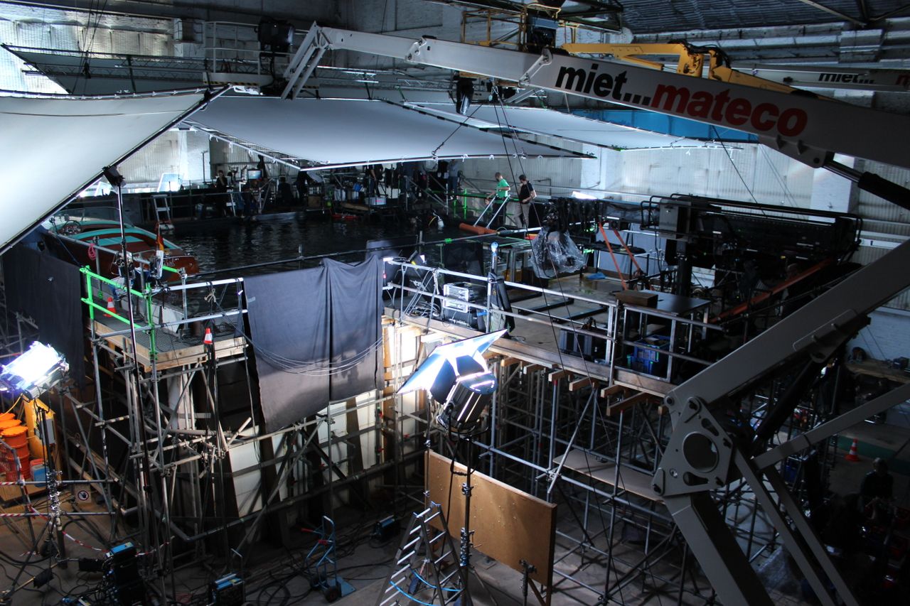 Studio Babelsberg bietet Deutschlands größten Wassertank für Action-Aufnahmen unter und über Wasser. Das Becken hat ein Fassungsvermögen von über 500.000 Liter bei 4 Metern Tiefe.