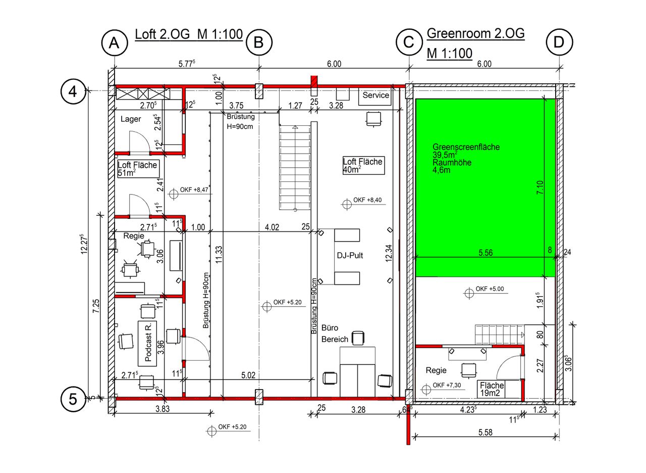 - Maße der grünen Fläche: 5,3 m (b) x 7,1 m (l) x 4,6 m (h)