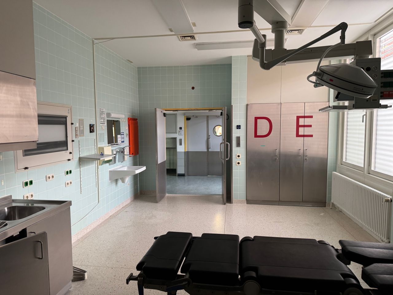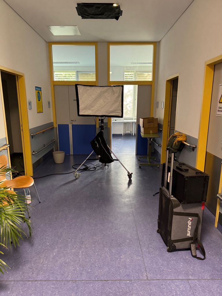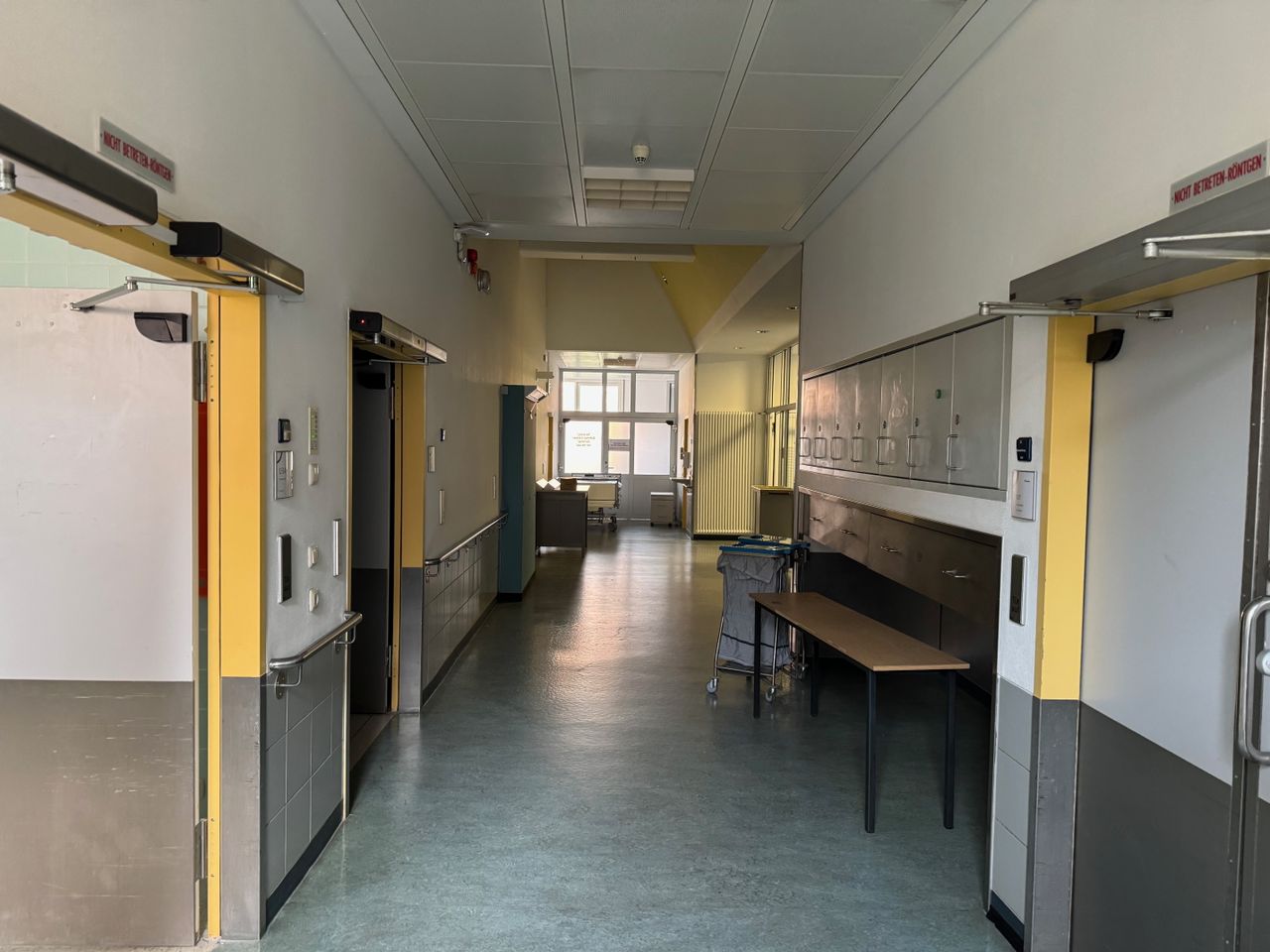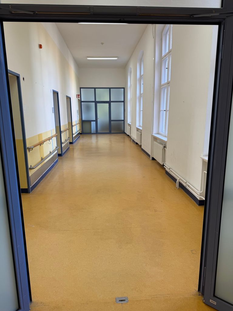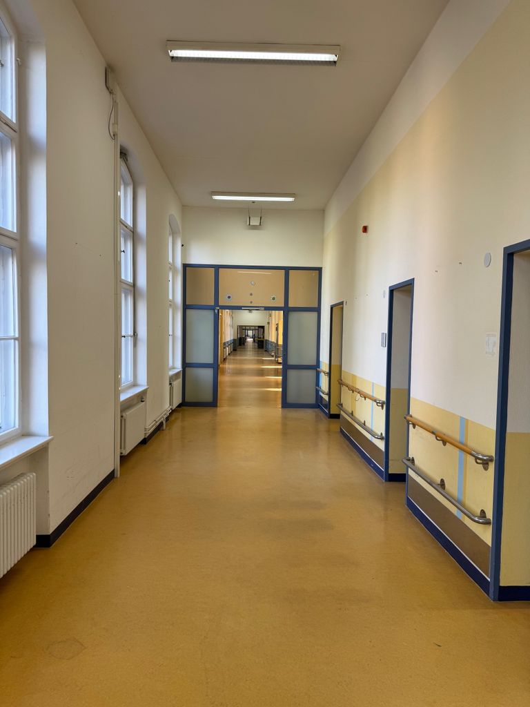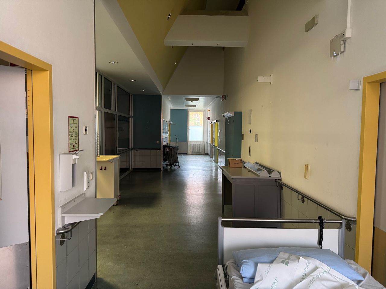 Es handelt sich um das Haus 7 auf dem Gelände, ein denkmalgeschützter Altbau, aber innen renoviert zu einem Krankenhausbetrieb: Flure, Krankenzimmer, Chefarztbüro, Konferenzraum, Empfang, Schwesterndienstplatz