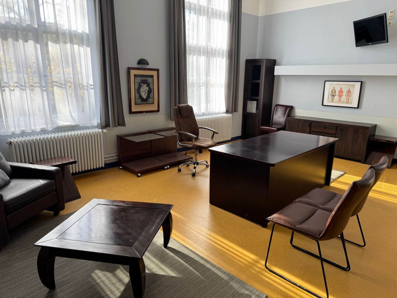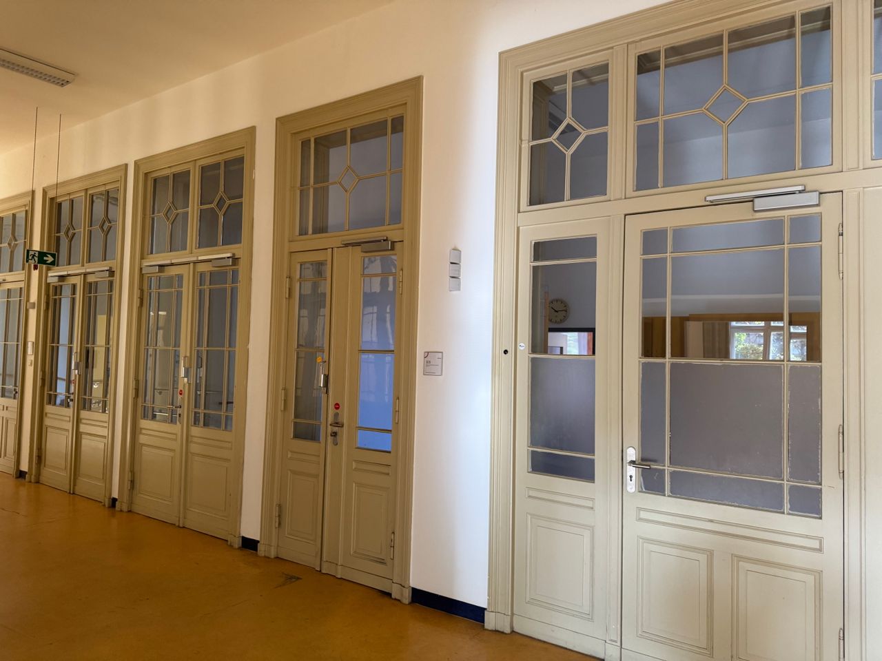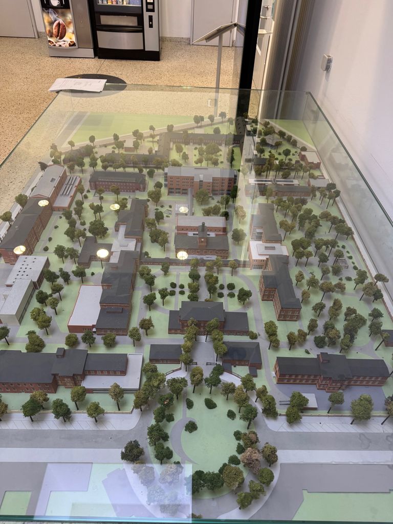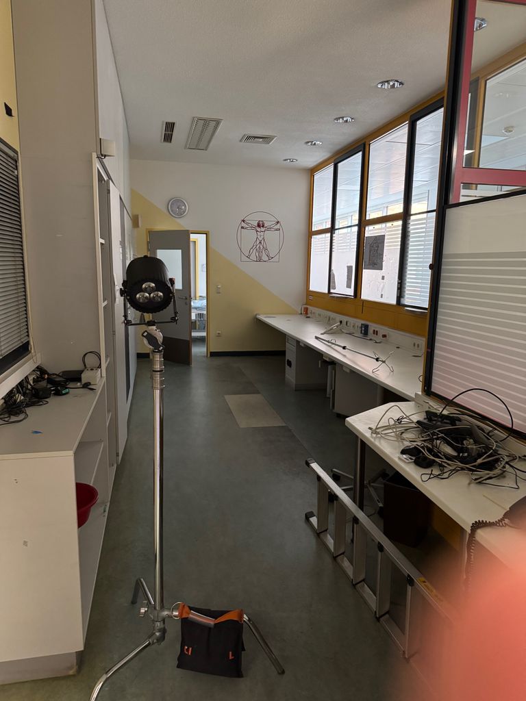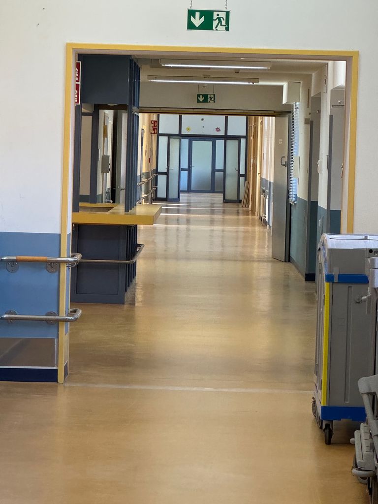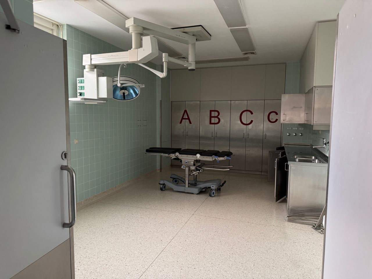 Es handelt sich um das Haus 7 auf dem Gelände, ein denkmalgeschützter Altbau, aber innen renoviert zu einem Krankenhausbetrieb: Flure, Krankenzimmer, Chefarztbüro, Konferenzraum, Empfang, Schwesterndienstplatz
