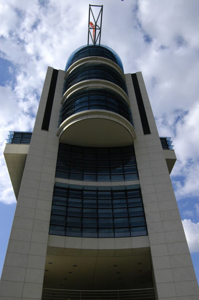 tiefblau schimmerndes Metall dominieren die Optik dieses Gebäudes, das sich mit seiner historischen