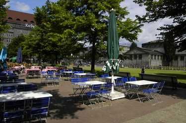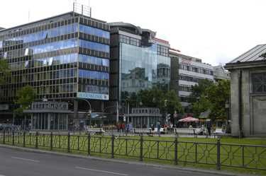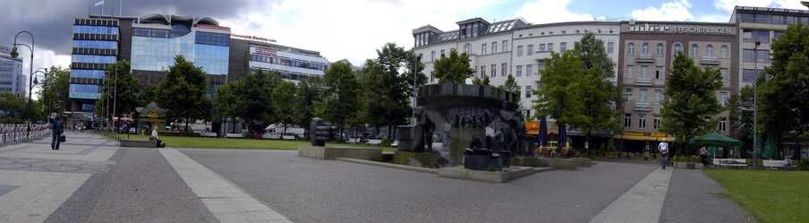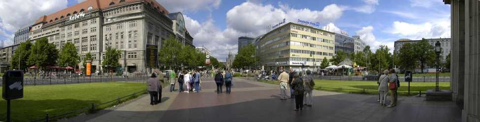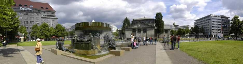 Platz links und rechts von Tauentzienstraße, Brunnen, Gebäude verschiedener Baustile und Epochen, viele Touristen