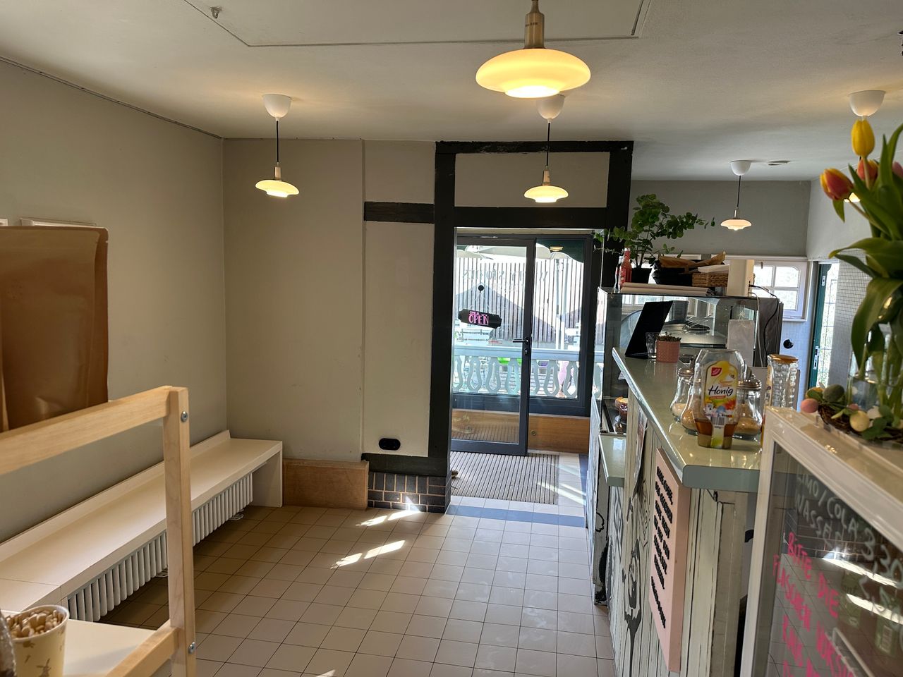 Die stilvolle Einrichtung und die liebevoll gestalteten Details schaffen eine inspirierende Atmosphäre, die sowohl intim als auch ansprechend ist. Die angrenzende Terrasse erweitert den Raum und ermöglicht es, das pulsierende Leben der Stadt einzufangen – ideal für Szenen im Freien oder entspannte Gespräche.