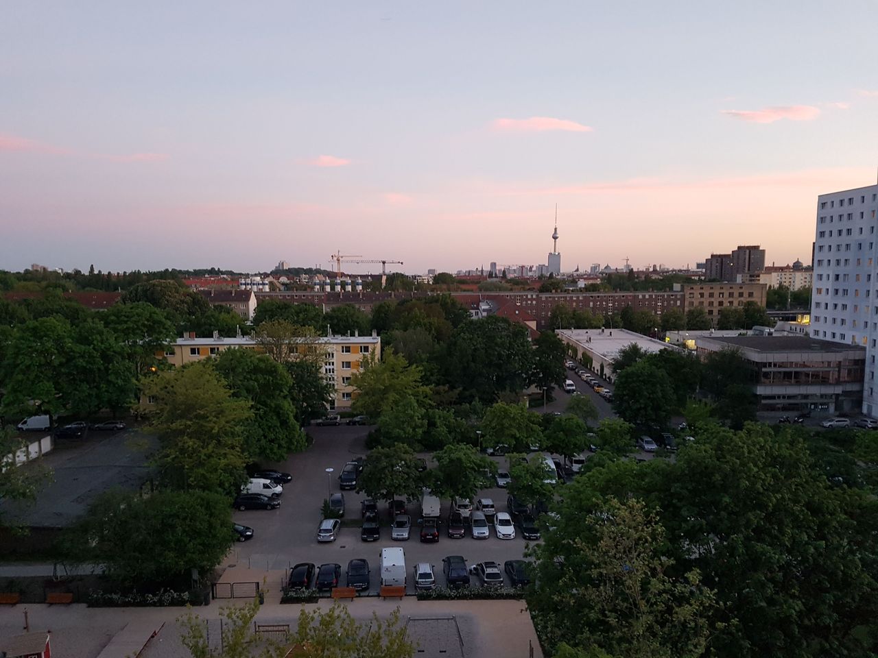 Die Wohnung befindet sich im 9. Stock hat leider keinen Balkon, aber dafür einen atemberaubenden Ausblick über Berlin.