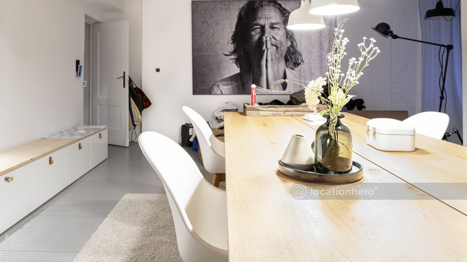 Dave ist eine schöne, große, alte Villa am Stadtrand von Berlin. Der ausgedehnte Garten mit 1200 Quadratmeter und großzügige Wohnräume mit 200 Quadratmeter bieten viele schöne Motive. Die doppelflüglige Schiebetür eröffnet eine lange Flucht. Die Einrichtung ist edel und sehr geschmackvoll. angeboten werden Hochparterre, Souterrain und Garten mit Gartenhaus.
