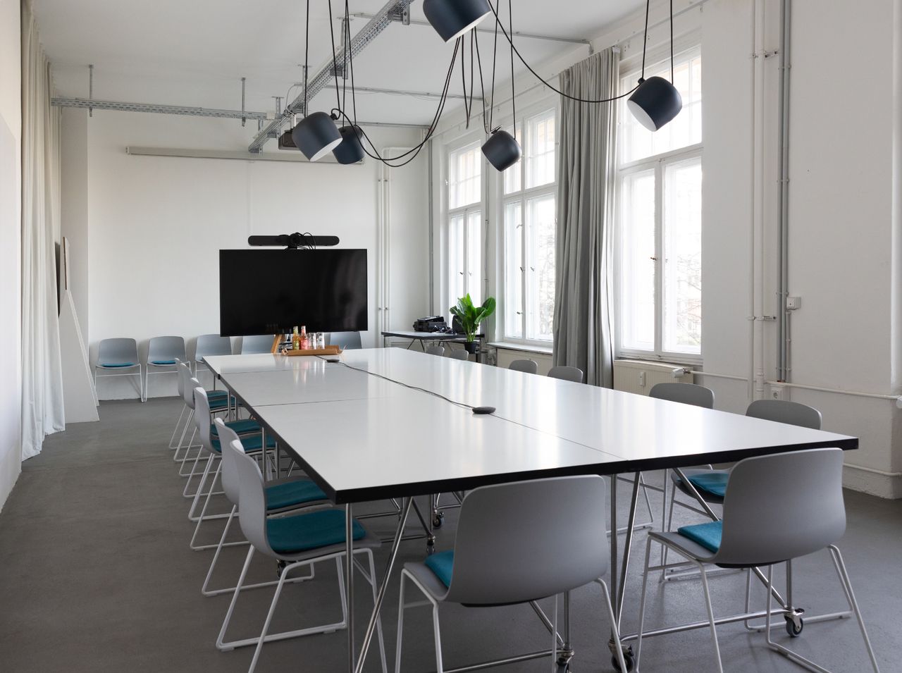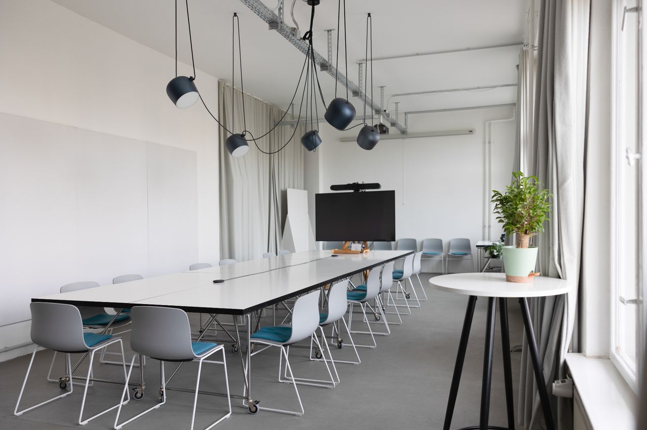 Der großzügige Hauptraum mit großem Konferenztisch (bis zu 20 Personen) lässt sich flexibel nutzen und inszenieren. Ergänzt wird er durch eine angrenzende Lobby mit vielfältigen Sitz- und Interaktionsmöglichkeiten, die sich hervorragend als zusätzliche Spielfläche, Aufenthaltsbereich oder Set-Erweiterung eignet. Beide Räume zusammen eröffnen zahlreiche Möglichkeiten für unterschiedliche Szenarien – von Interviews und Editorial-Shootings bis hin zu szenischen Drehs.