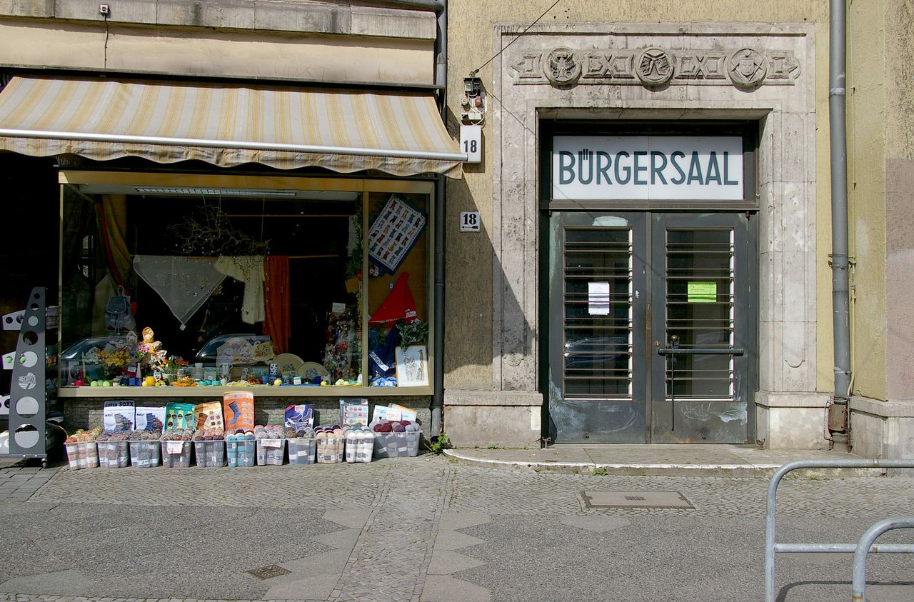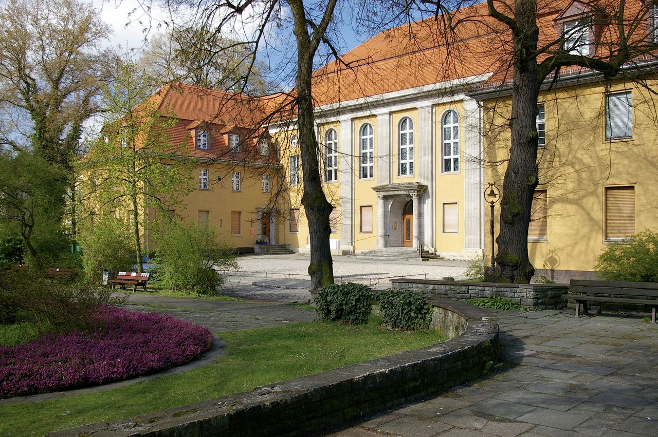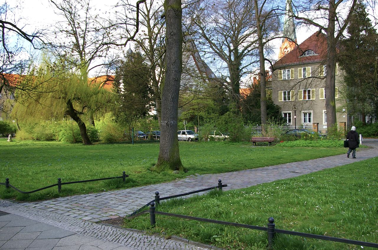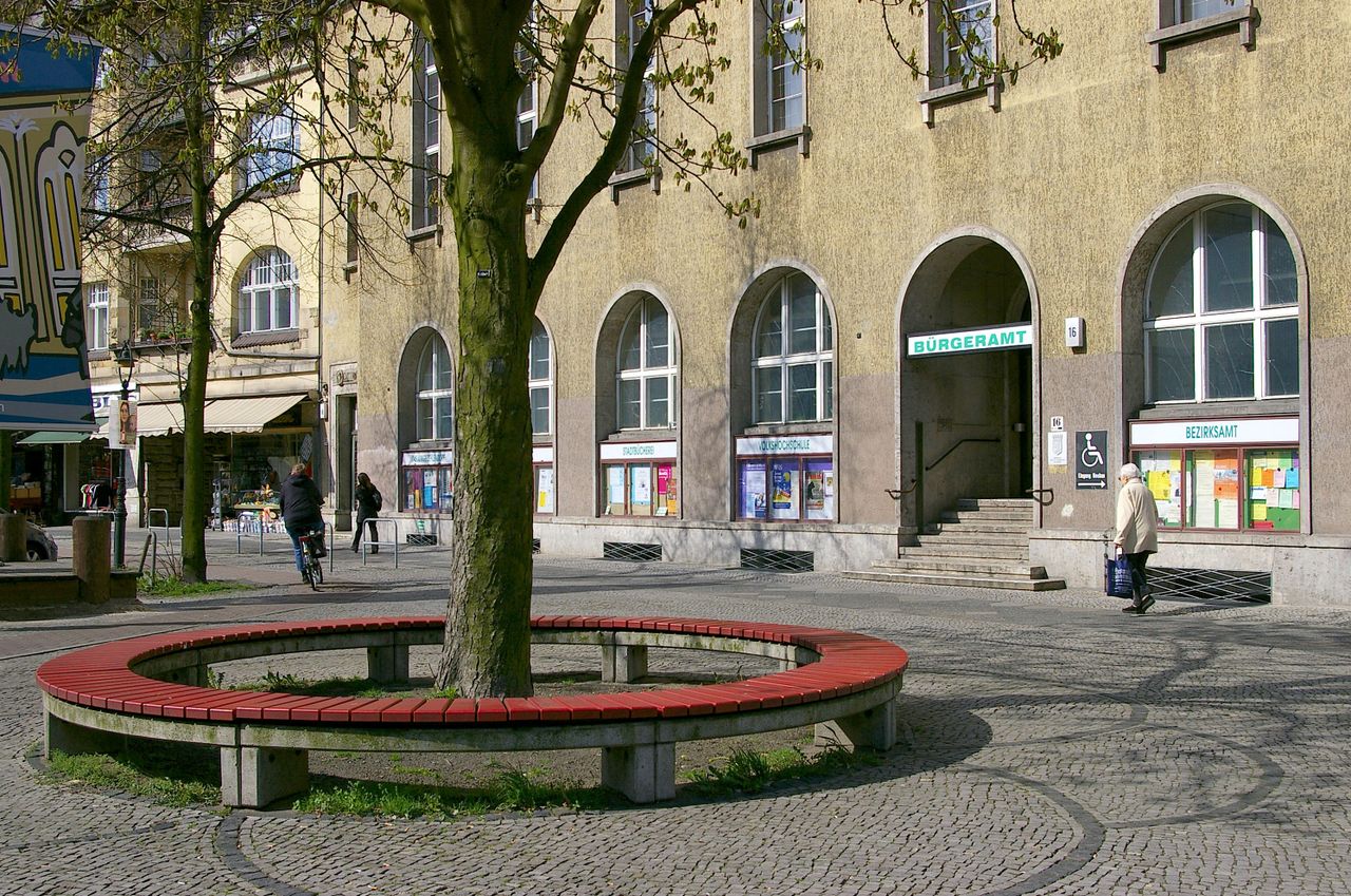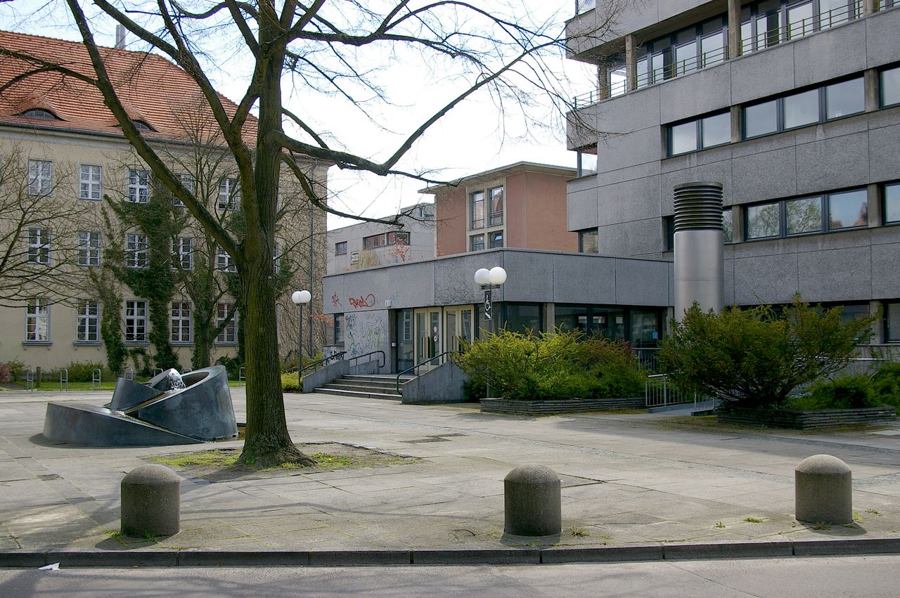 Große, sehr stark befahrene Ampelkreuzung von Potsdamer Strasse und Clayallee, S-Bahnhof, Marktständer, Gebäude aus fast allen Stilepochen