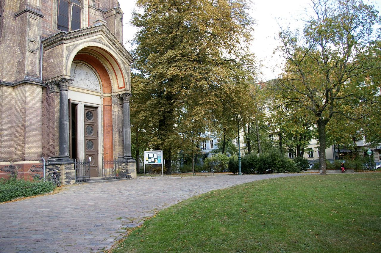 Rund um den Platz stehen Wohnhäuser, hauptsächlich aus der Gründerzeit, die zum größten Teil bereits saniert sind. Gelegentlich finden in der Kirche Veranstaltungen statt (Konzerte, Ausstellungen und auch Filmdrehs).