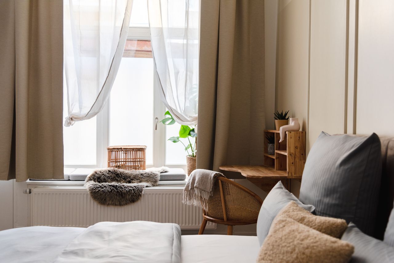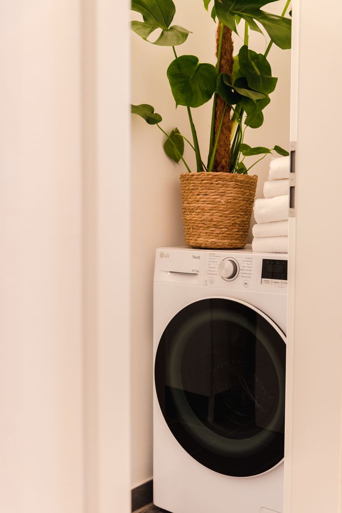 Die Apartment sind hell und freundlich gestaltet und verfügt über große Fenster, die viel natürliches Licht hereinlassen. Zusätzlich stehen Brettspiele zur Verfügung. In jedem Schlafzimmer gibt es auch einen eigenen Arbeitsplatz, der ideal für Gäste ist, die auch während ihres Aufenthalts arbeiten möchten. Die offenen Wohnbereiche sind mit einer gemütlichen Sitzecke, einem Flachbildfernseher und einem Esstisch ausgestattet. Die offene Küche ist komplett ausgestattet mit allen Geräten und Utensilien, die Sie zum Zubereiten von Mahlzeiten benötigen, einschließlich eines Herds, Kühlschranks, Geschirrspülers, scharfen Messern, Weingläsern und einer Kaffeemaschine.