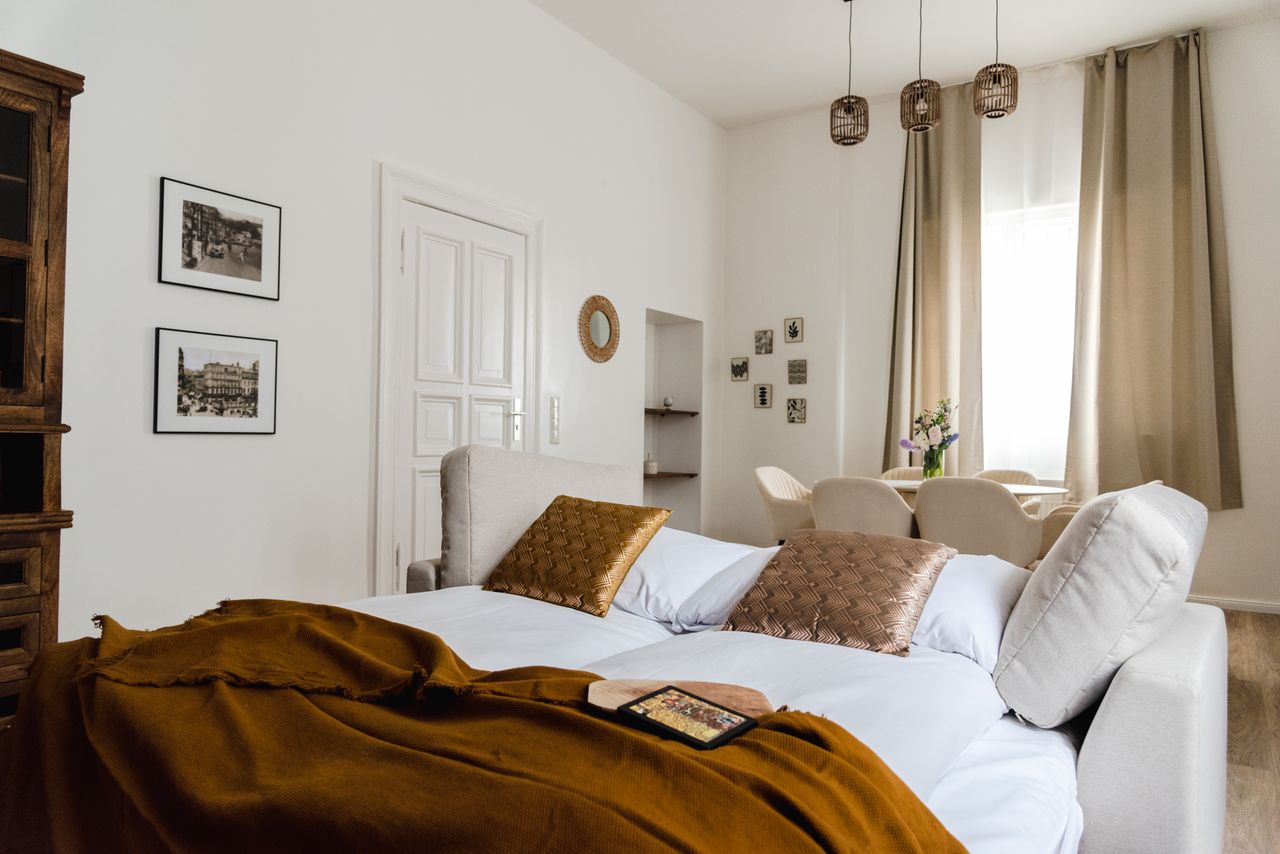 Willkommen in unserem frisch renovierten und luxuriösen Apartment im Herzen von Mitte! Mit 130m² bietet unser geräumiges Apartment Platz für bis zu neun Gäste. Es besteht aus zwei separaten Apartments, die durch eine Verbindungstür miteinander verbunden sind: 40m² und 90m².