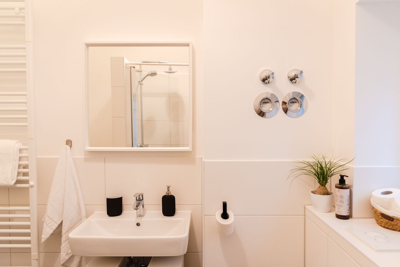 Die Unterkunft ist ausgestattet mit brandneuen, hochwertigen Möbeln und Geräten, einer voll ausgestatteten Küche, einer Kochnische und zwei eleganten Badezimmern. Die drei Schlafzimmer sind geräumig und mit komfortablen Kingsize-Boxspringbetten für einen erholsamen Schlaf ausgestattet. Beide Apartments verfügen über ein Bad mit Walk-in Dusche. Im Wohnzimmer gibt es eine Schlafcouch und einen großen Gemeinschaftsbereich von etwa 35m² und einen Essbereich für 6 Personen. Ein zusätzlicher Essbereich für 3 Personen befindet sich im kleineren Apartment. 55'' Smart TVs mit Netflix in jedem Raum und das schnelle 200mbits Wifi runden das Apartment ab.