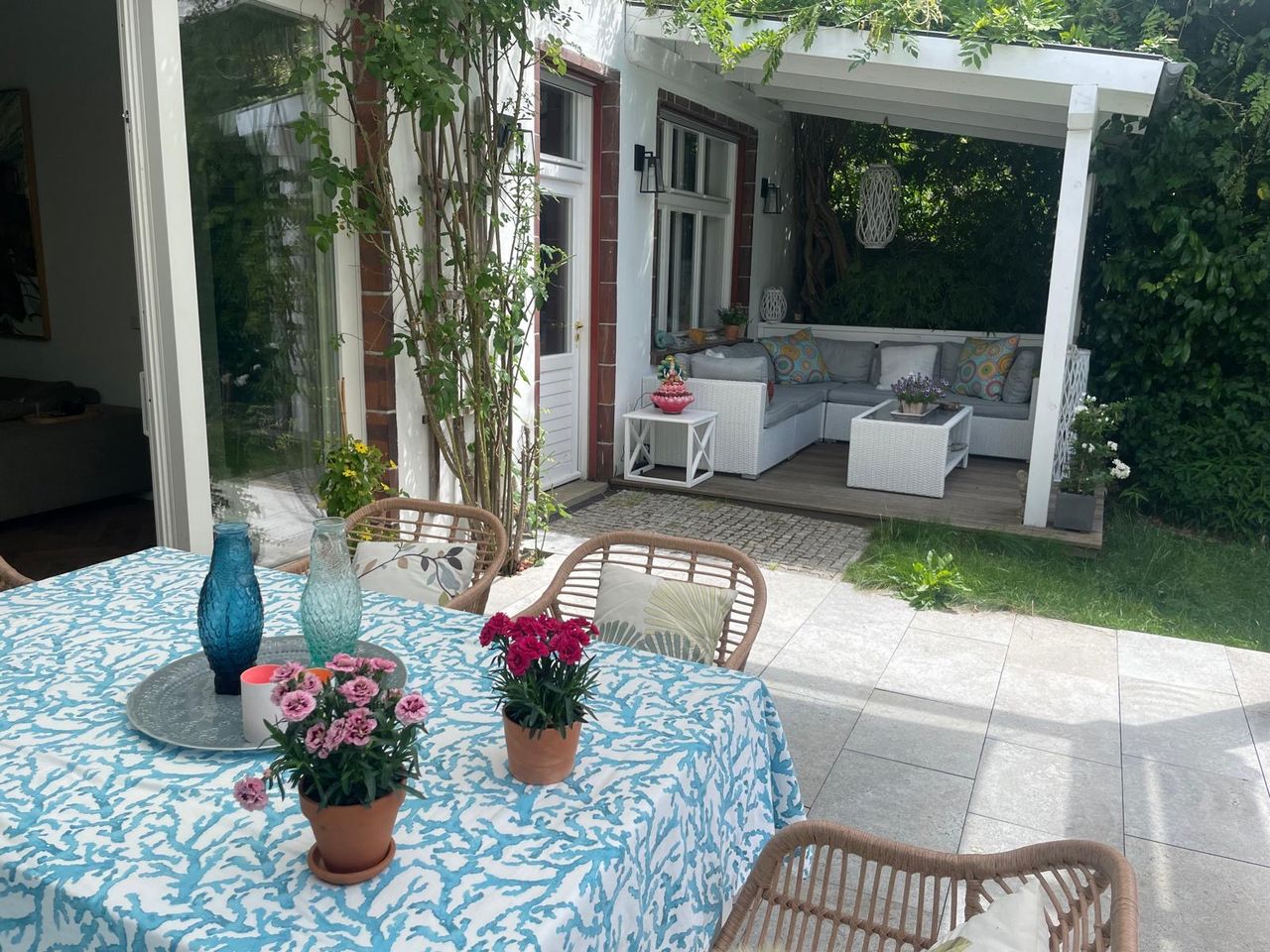 Harmonische Kombination von Alt und Neu: Die Einrichtung des Hauses verbindet nostalgischen Charme mit modernen Elementen, was eine einzigartige Atmosphäre schafft.