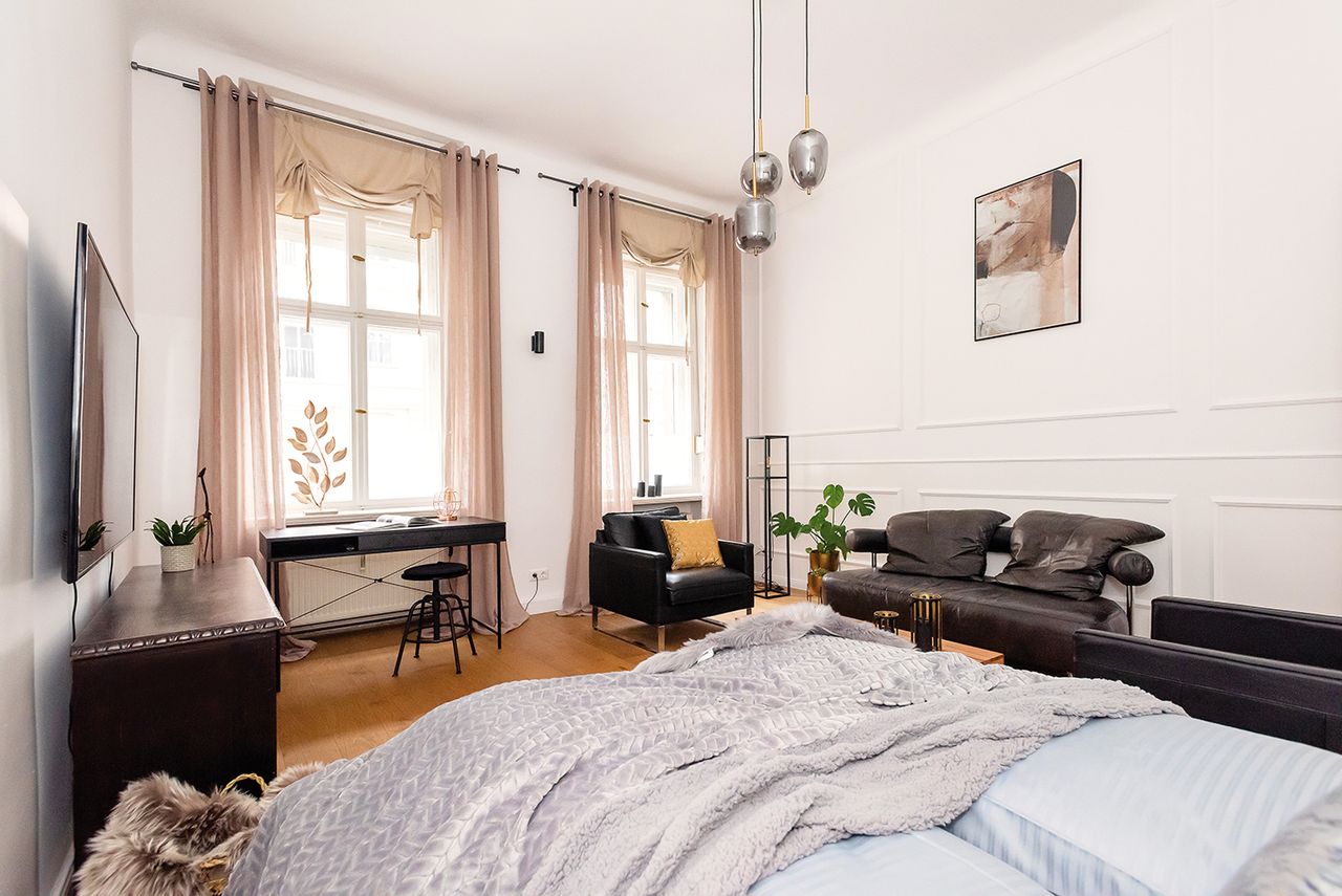 - Stilvolles, urbanes Wohnen im Romantiker-Kiez in Mitte: fantastische Tage in Berlin in zentralster Lage. Erholsamer Schlaf garantiert dank einer kleines Seitenstraße und einer ruhigen Nachbarschaft. Ein brandneues, renoviertes, 90 m² großes 3-Zimmer-Luxusapartment mit 4 m hohen Decken wird zum perfekten Rückzugsort während des Hauptstadtaufenthaltes. Das geräumige Apartment ist ideal für Gruppen von 3-5 Personen. Die drei separaten Zimmer können flexibel zum Schlafen oder zum Arbeiten oder Besprechungsräumen umfunktioniert werden - ideal für Geschäftsreisende die zu einer der vielen Messen in die Stadt kommen. Hochwertige, maßgefertigte Möbel mit authentischen, warmen Materialien schaffen ein ausgewogenes Raumgefühl. Die brandneue Küchenmeile bietet nicht nur ausreichend Platz für gemeinsames Kochen, sondern hat auch alle denkbaren Ausstattungsmerkmale: vom Gewürzregal bis hin zur Profi-Messerset ist alles vorhanden.
