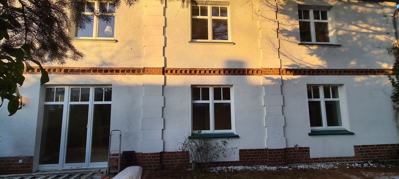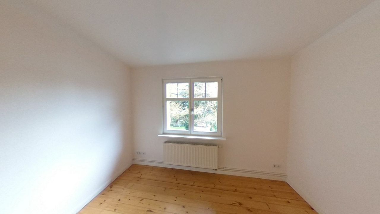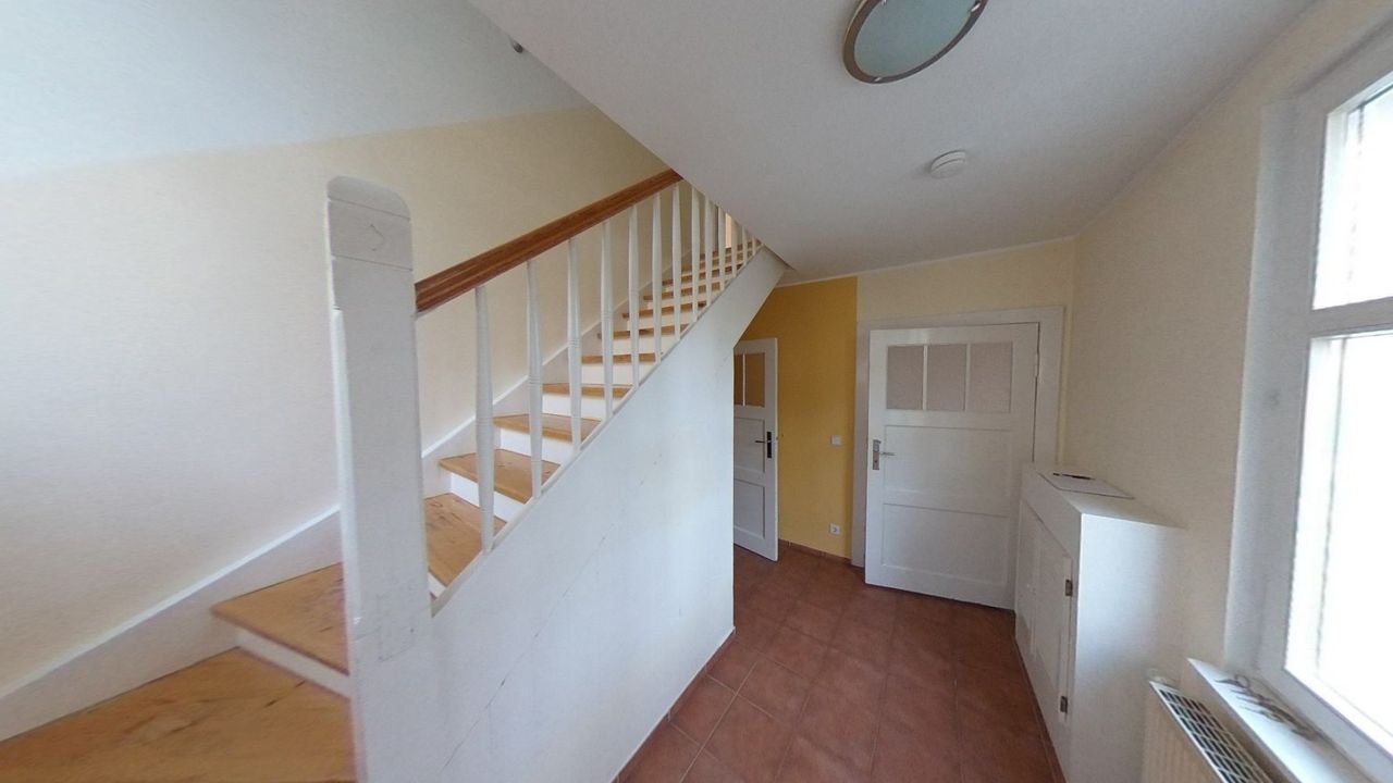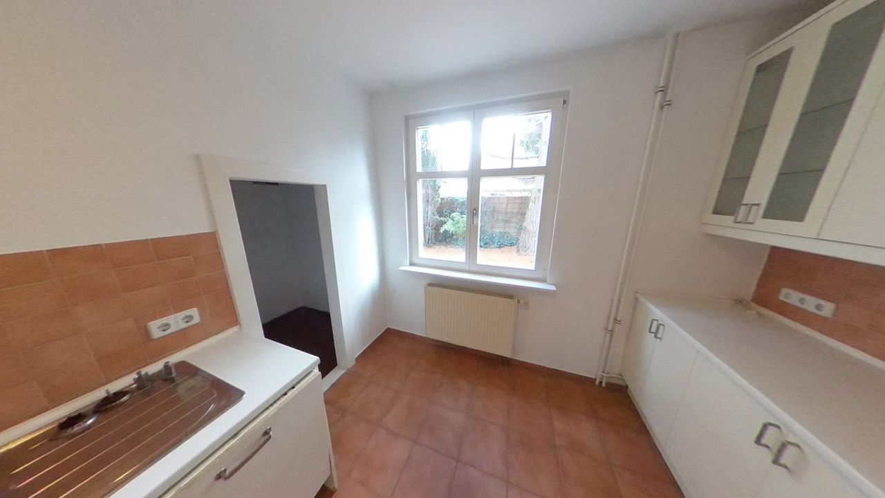 Haus ohne Möblierung mit gepflastertem Hofcharakter auf dem hinteren Grundstücksteil.