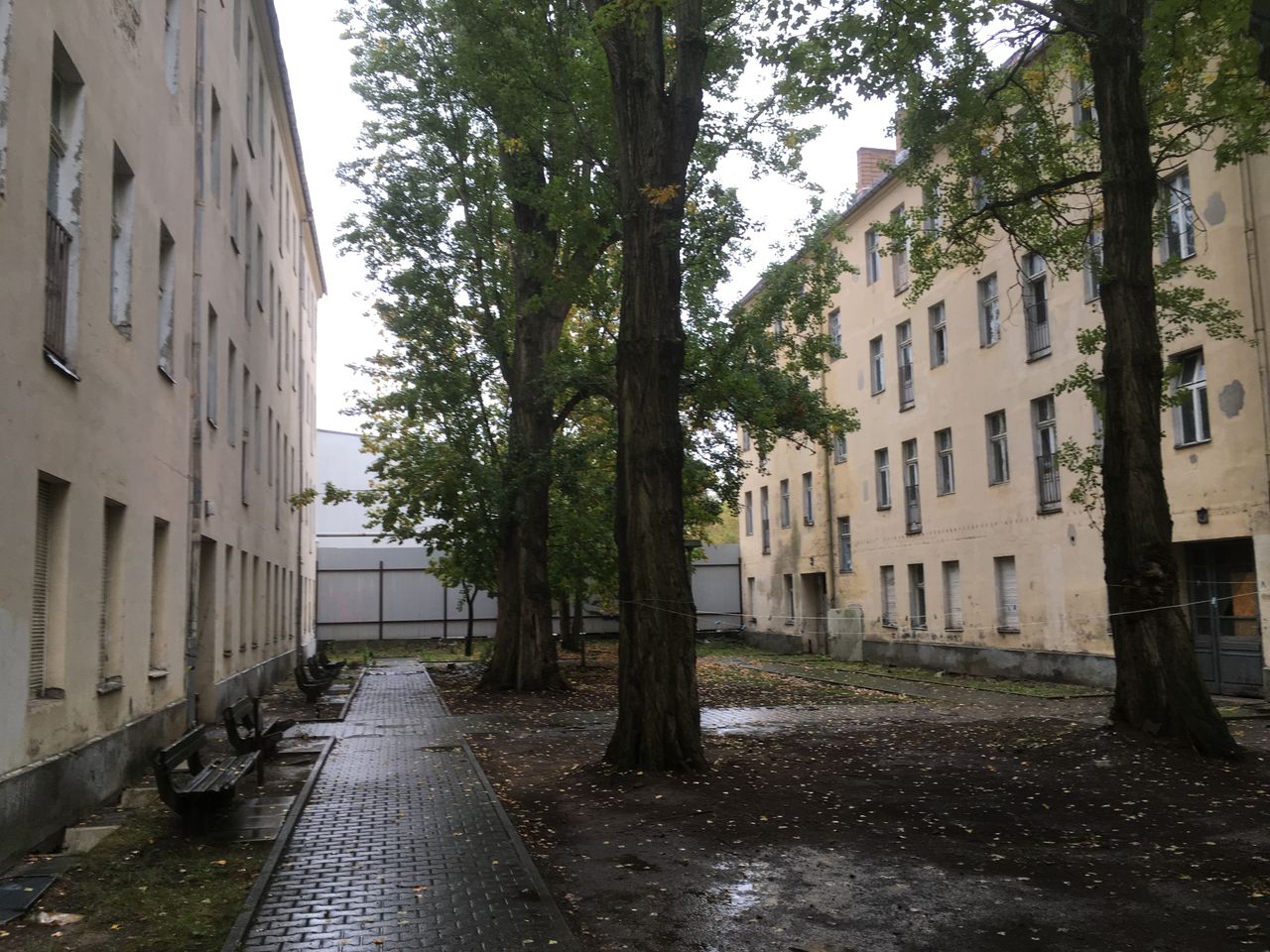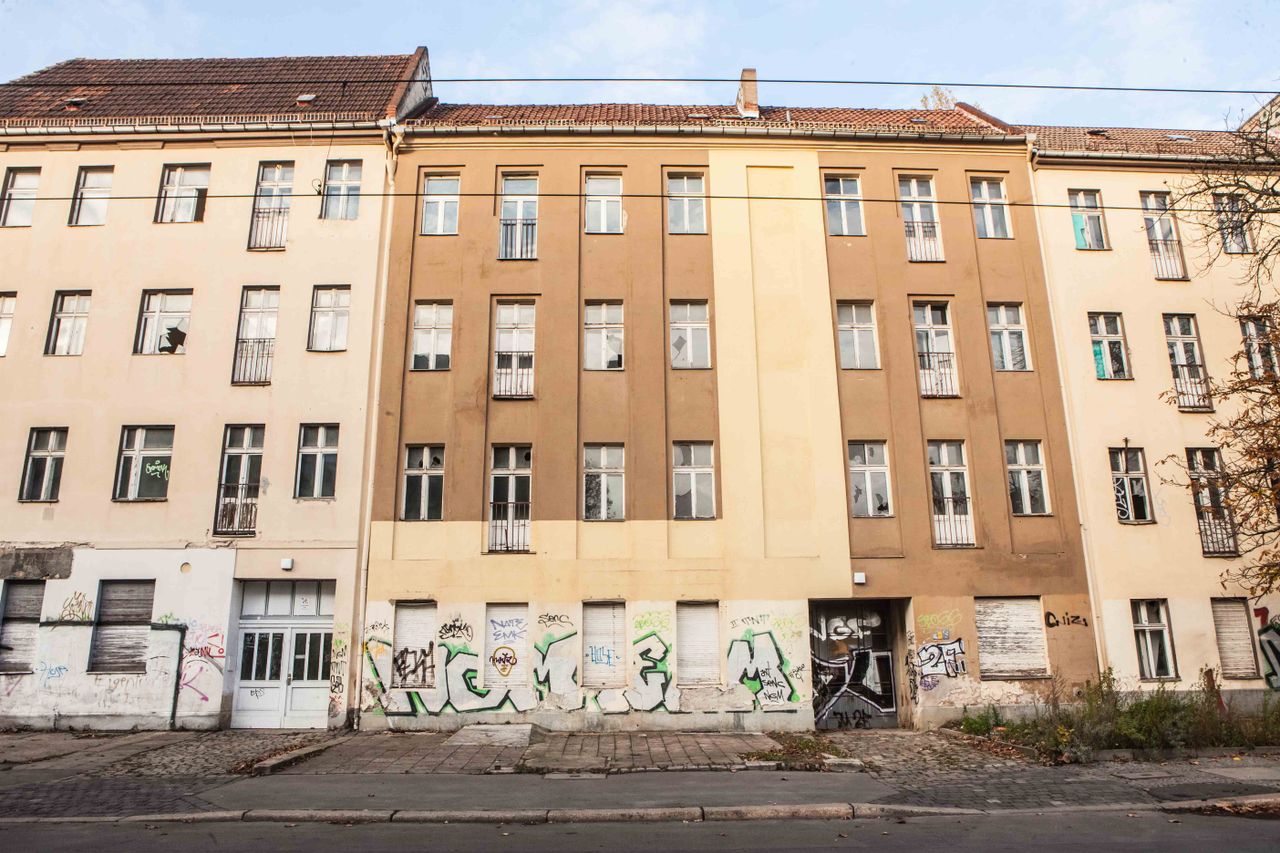 Der leerstehende, unsanierte Häuserkomplex aus dem Baujahr 1917 besteht aus insgesamt acht Altbau-Wohnhäusern, welche in 2 Riegeln zueinander stehen und einen abgeschirmten Innenhof (1150 m2) umschließen. Es gibt einen weiteren charmanten kleinen Hinterhof (700 m2). Dieser ist begrenzt durch eine malerische Backsteinmauer hinter dem zweiten Riegel.