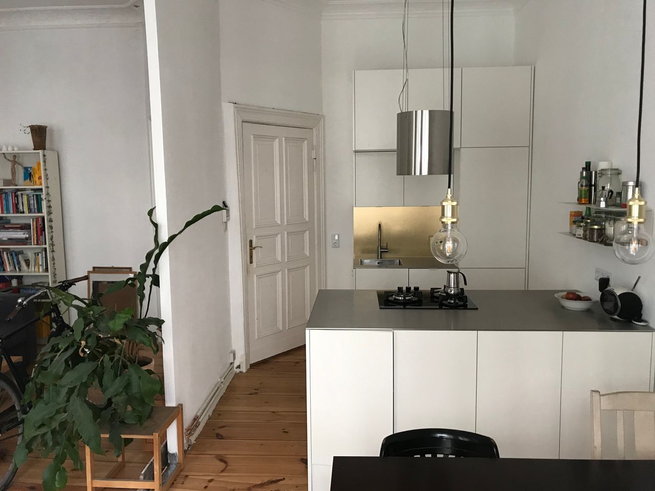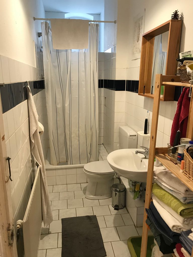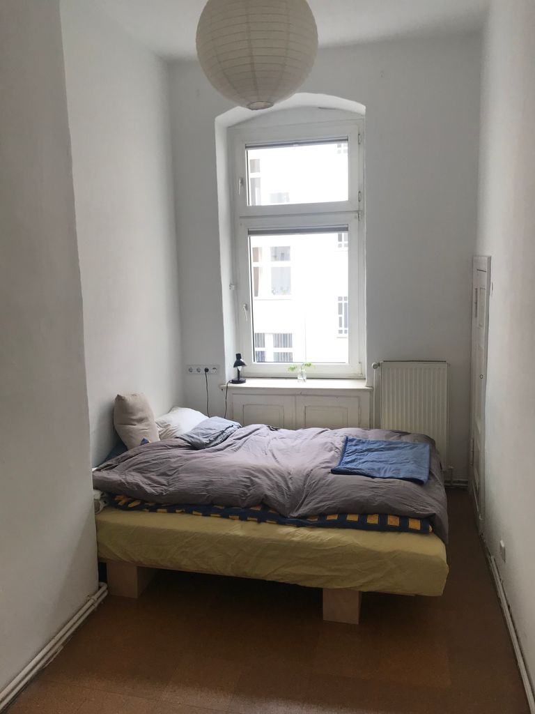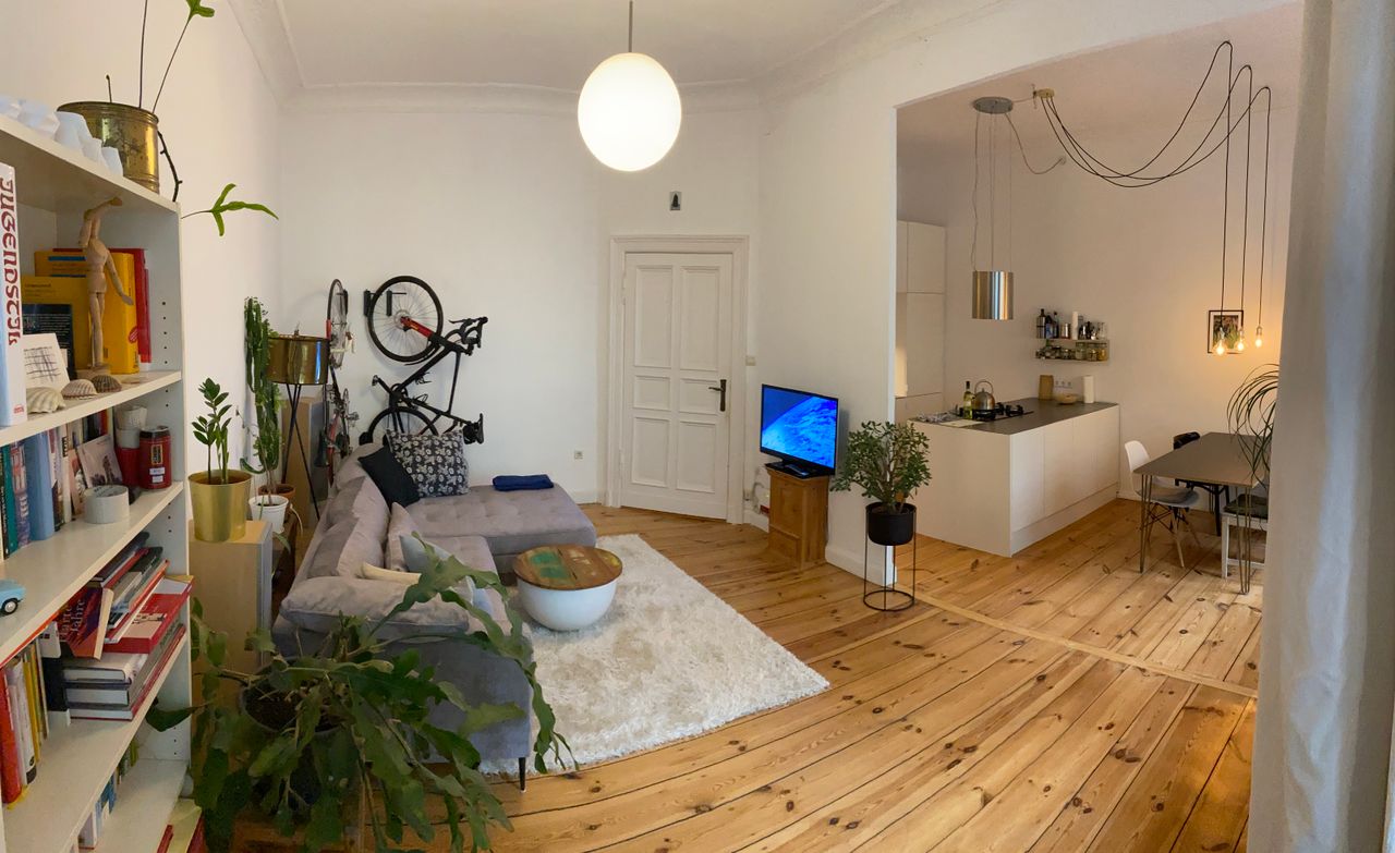 Die Wohnung befindet sich im 1. OG in einem typischen Berliner Altbau von 1908 mit abgezogenen Dielenboden, schönen Stuckdecken und moderner Küche. Die Wohnküche ist mit dem Wohnzimmer durch einen 3 m breiten Durchbruch verbunden und an das Wohnzimmer schließt sich ein kleiner Erker an. Alle Wände sind weiß gestrichen. Die Wohnung liegt in einer ruhigen Seitenstraße mit Kopfsteinpflaster im Bezirk Wedding und verfügt über einen 4,5 m² Balkon zur Straßenseite. Ich bin flexibel in der Vermietung und die Möbel können bei Bedarf umgeräumt bzw. ausgetauscht werden. Vor dem Haus und in den Seitenstraßen bestehen viele Parkmöglichkeiten.