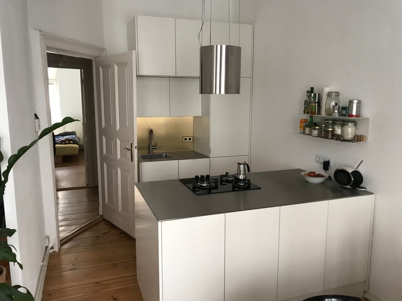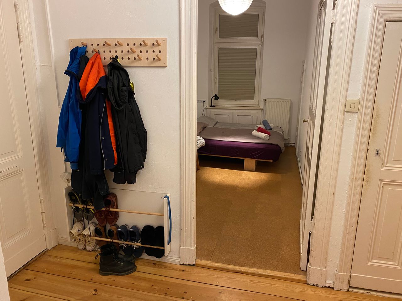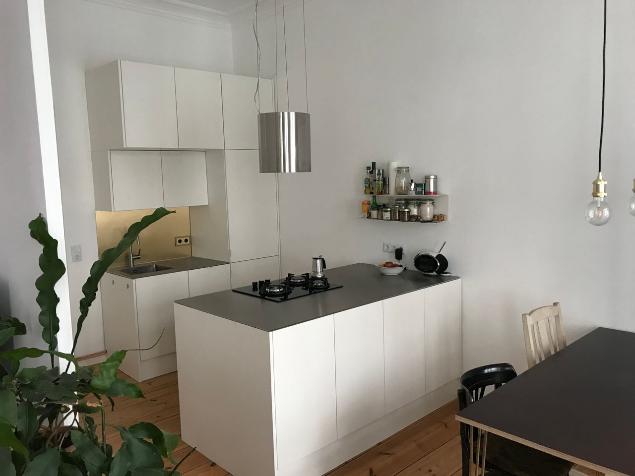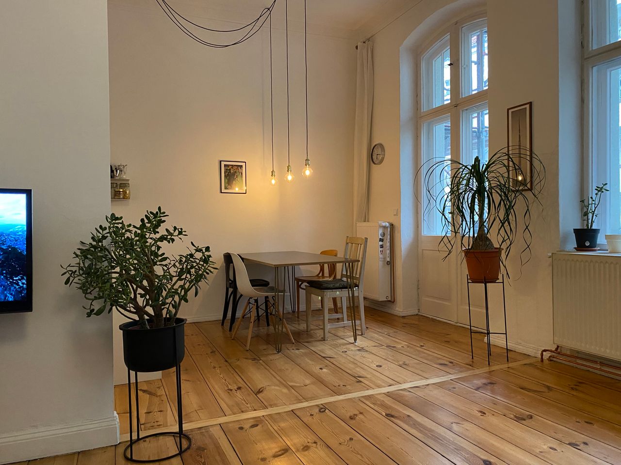 Die Wohnung befindet sich im 1. OG in einem typischen Berliner Altbau von 1908 mit abgezogenen Dielenboden, schönen Stuckdecken und moderner Küche. Die Wohnküche ist mit dem Wohnzimmer durch einen 3 m breiten Durchbruch verbunden und an das Wohnzimmer schließt sich ein kleiner Erker an. Alle Wände sind weiß gestrichen. Die Wohnung liegt in einer ruhigen Seitenstraße mit Kopfsteinpflaster im Bezirk Wedding und verfügt über einen 4,5 m² Balkon zur Straßenseite. Ich bin flexibel in der Vermietung und die Möbel können bei Bedarf umgeräumt bzw. ausgetauscht werden. Vor dem Haus und in den Seitenstraßen bestehen viele Parkmöglichkeiten.