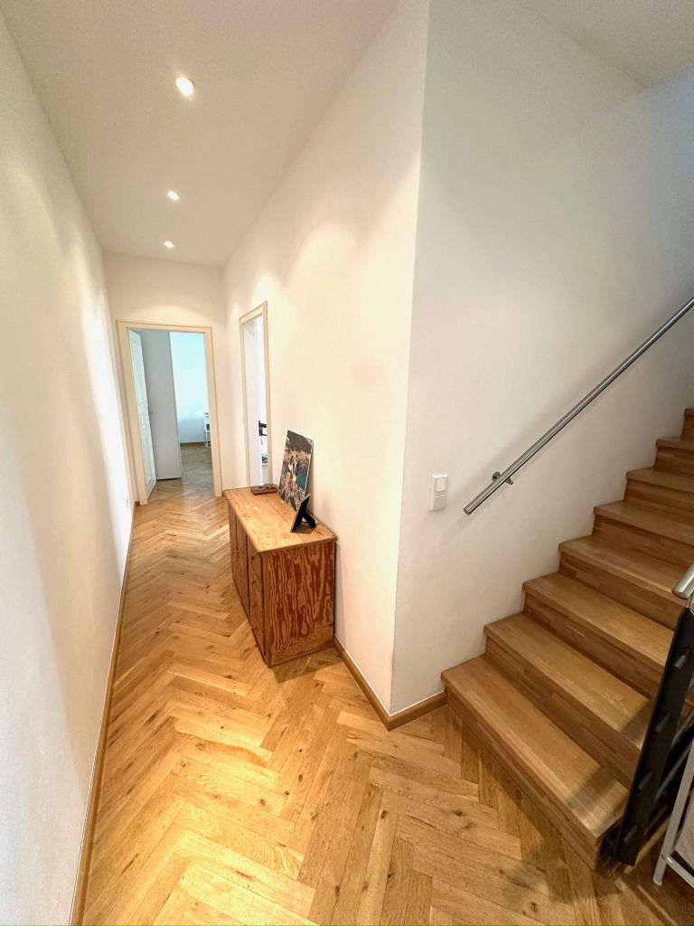 Stilvolle 114 m² große Maisonette-Wohnung im Prenzlauer Berg mit klassischem Berliner Altbaucharme. Die hellen Räume mit Fischgrätparkett, großen Fenstern und modern-minimalistischem Interior bieten eine ruhige, hochwertige Atmosphäre und viel natürliches Licht – ideal für Film-, TV- und Fotoshootings.