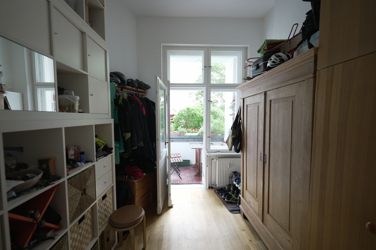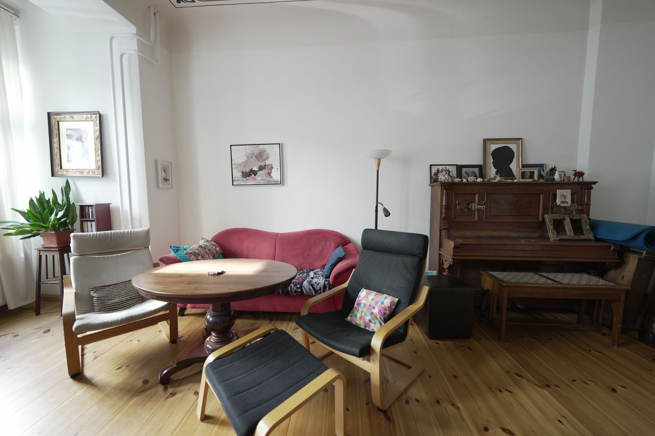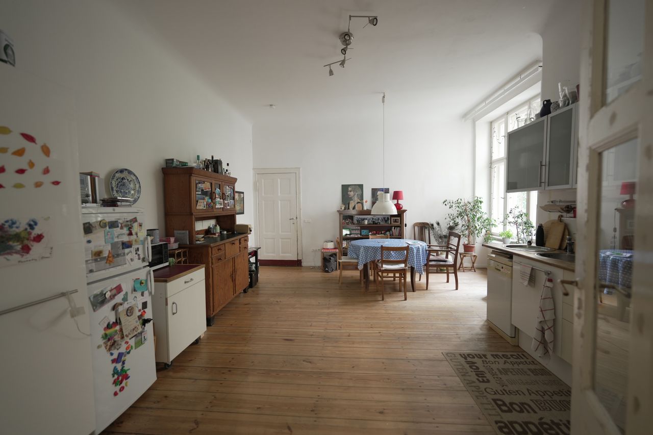 Die Wohnung in der Eylauer Str. ist groß und geräumig und eignet sich gut für Dreharbeiten. Insbesondere Wohnzimmer, Esszimmer und 1 Schlafzimmer bieten Platz für ein Filmteam. Die Wohnung liegt im Hochparterre und ist ideal für die Beleuchter um Licht zu stellen. Die Raumhöhe von 3,30m läßt Raum um den Ton zu angeln.