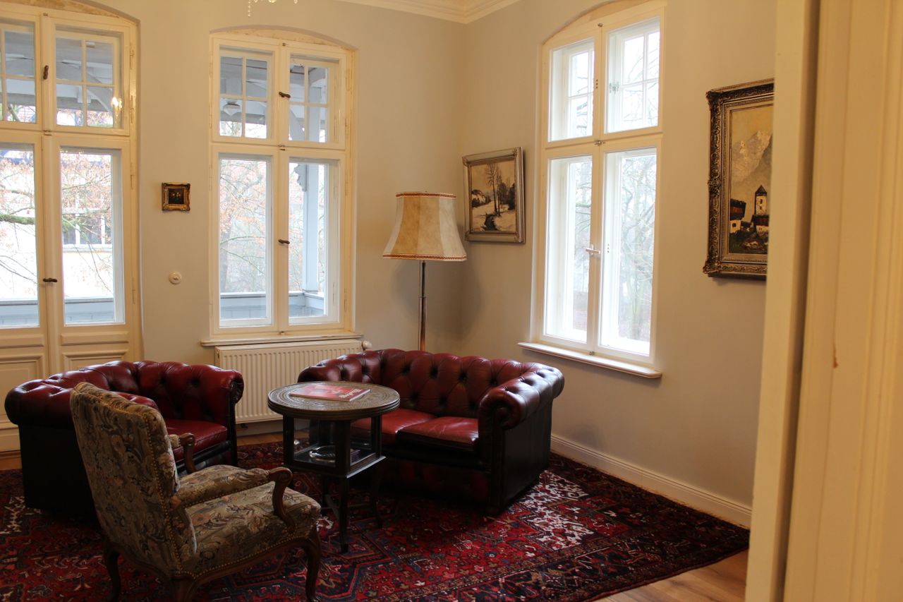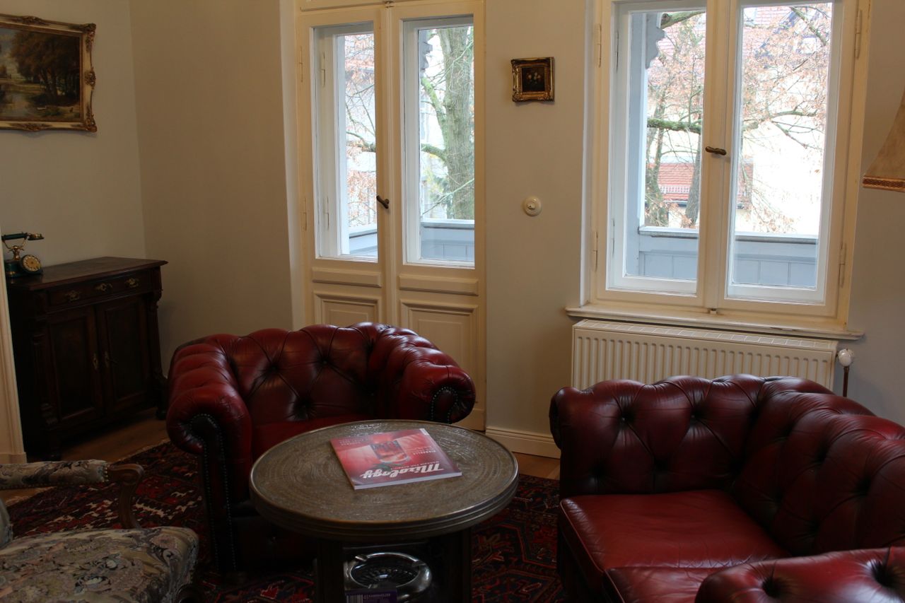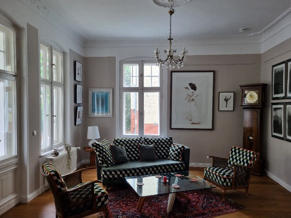 145 qm Altbauwohnung auf 2 Etagen mit Garten und 2 Balkonen werden in einer ruhigen Seitenstraße als Motiv angeboten. Als Besonderheit stehen in der oberen Etage mehrer Zimmer im Stil der 20-iger Jahre incl. eines Balkons zur Verfügung. Im unteren Bereich steht ein Zimmer mit ca.35 qm zur Verfügung. Erschlossen wird dieses Zimmer über eine Doppelflügeltür und verfügt über einen Balkon.
