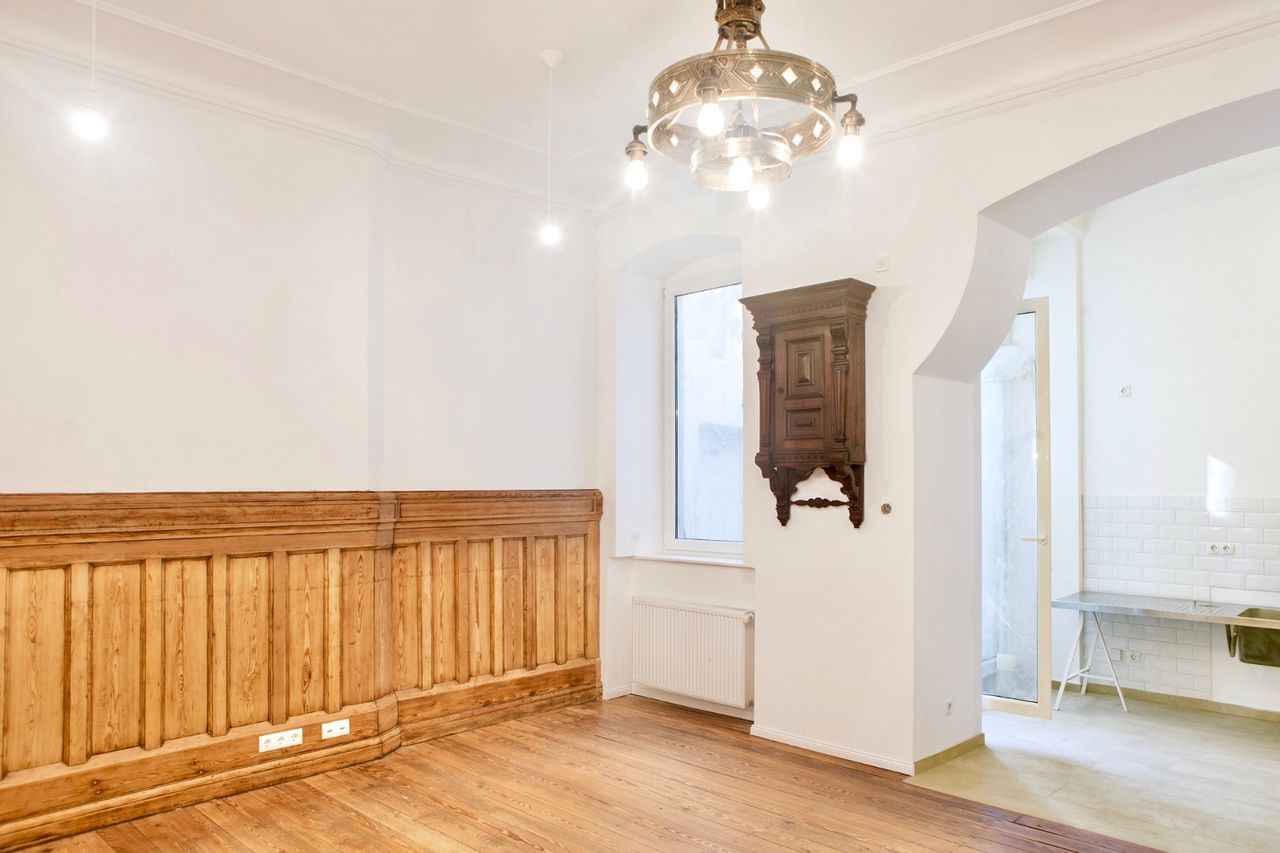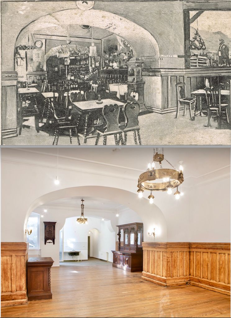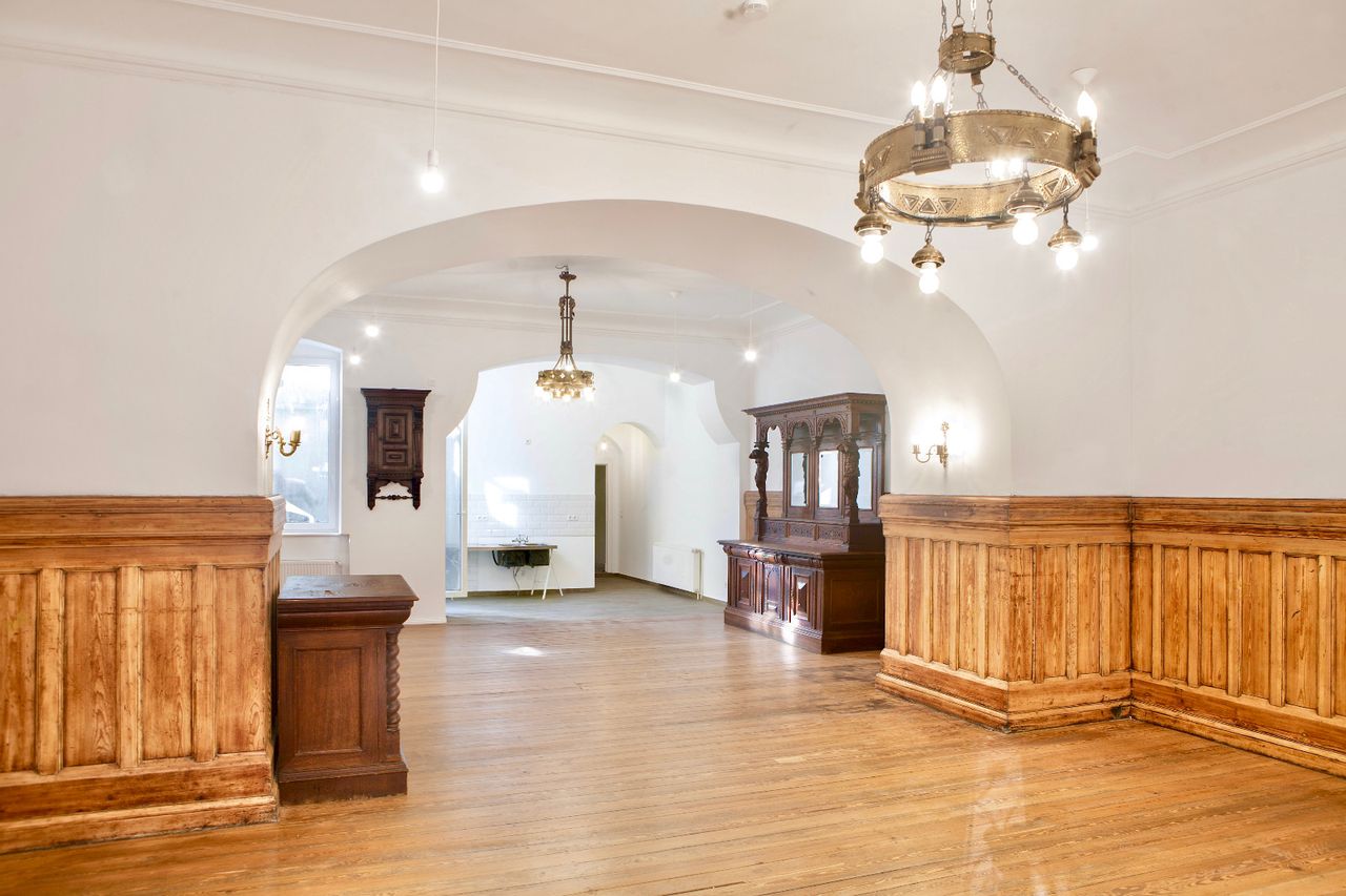 Die spektakuläre Location befindet sich in den Räumen eines ehemaligen Speiselokals aus der Wilhelminischen Zeit. Eine direkte Anbindung an die A100, Ringbahn sowie U9. Der ehemalige Speisesaal ist eine Rarität. Restaurants und Geschäfte in der Umgebung. Bautypische Merkmale sind erhalten geblieben und instand gesetzt. Konservierung und Restaurierung der Ausstattung: umlaufende Wandvertäfelung, Dielenboden, Stuckfries und Korbbögen.