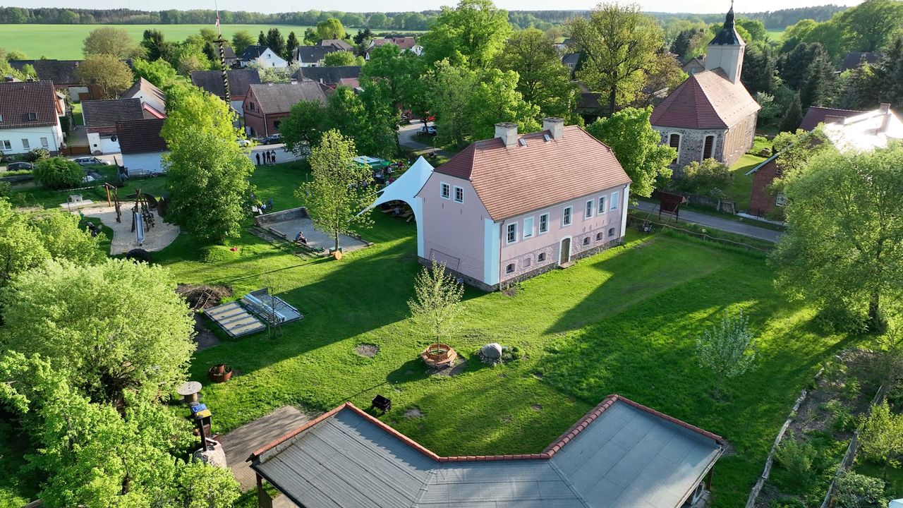 Das altehrwürdige Pfarrhaus wirkt eher wie ein Gutshaus, liegt mitten im Dorfkern und ist umgeben von einer großzügigen Fläche (4.000qm2). Insgesamt zählt es zu einem Ensemble von Kirche, alter Schule und dem Pfarrhaus.