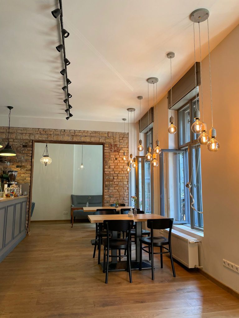 Es handelt sich um ein recht großes Cafe/Restaurant mit vielen gemütlichen Ecken. Licht ist Dimmbar.