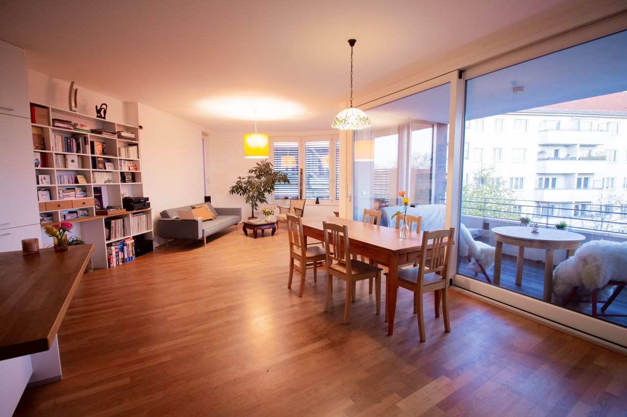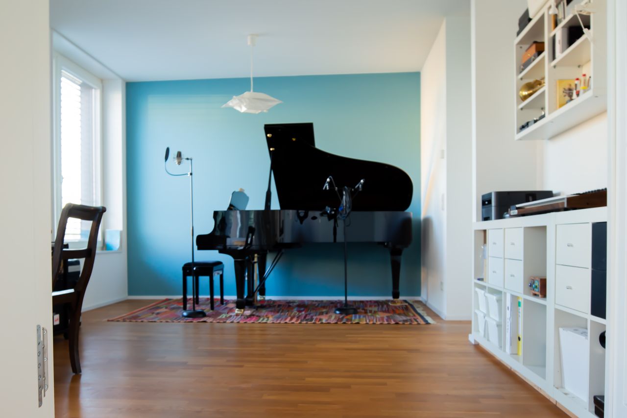Spacious apartment with a grand piano, music equipment, balcony and access to the rooftop terrace.