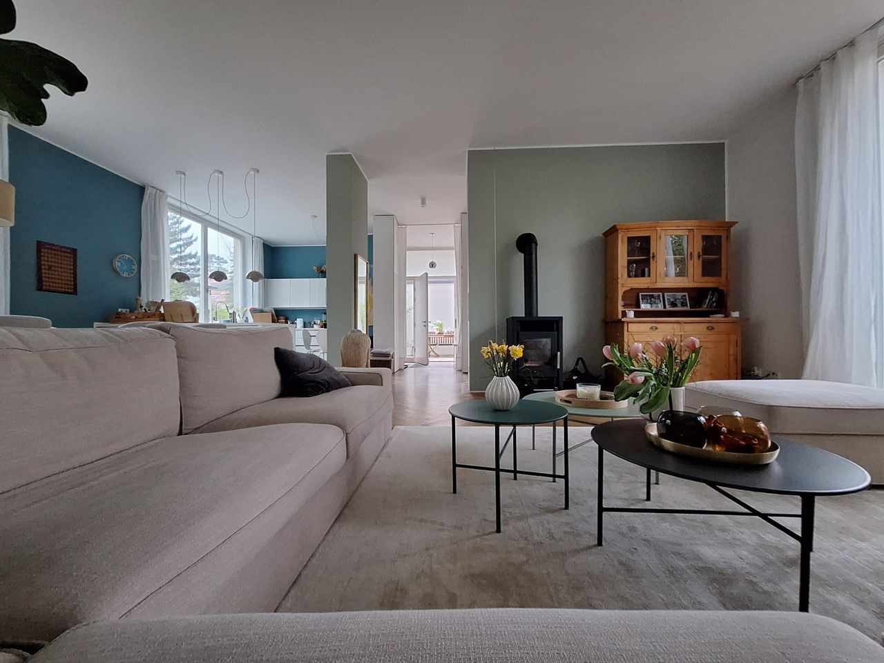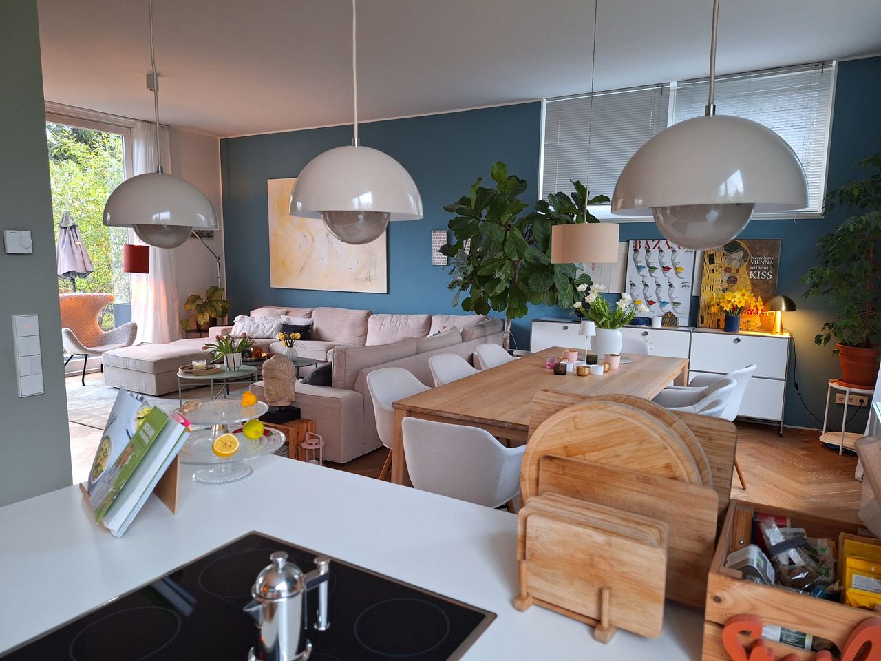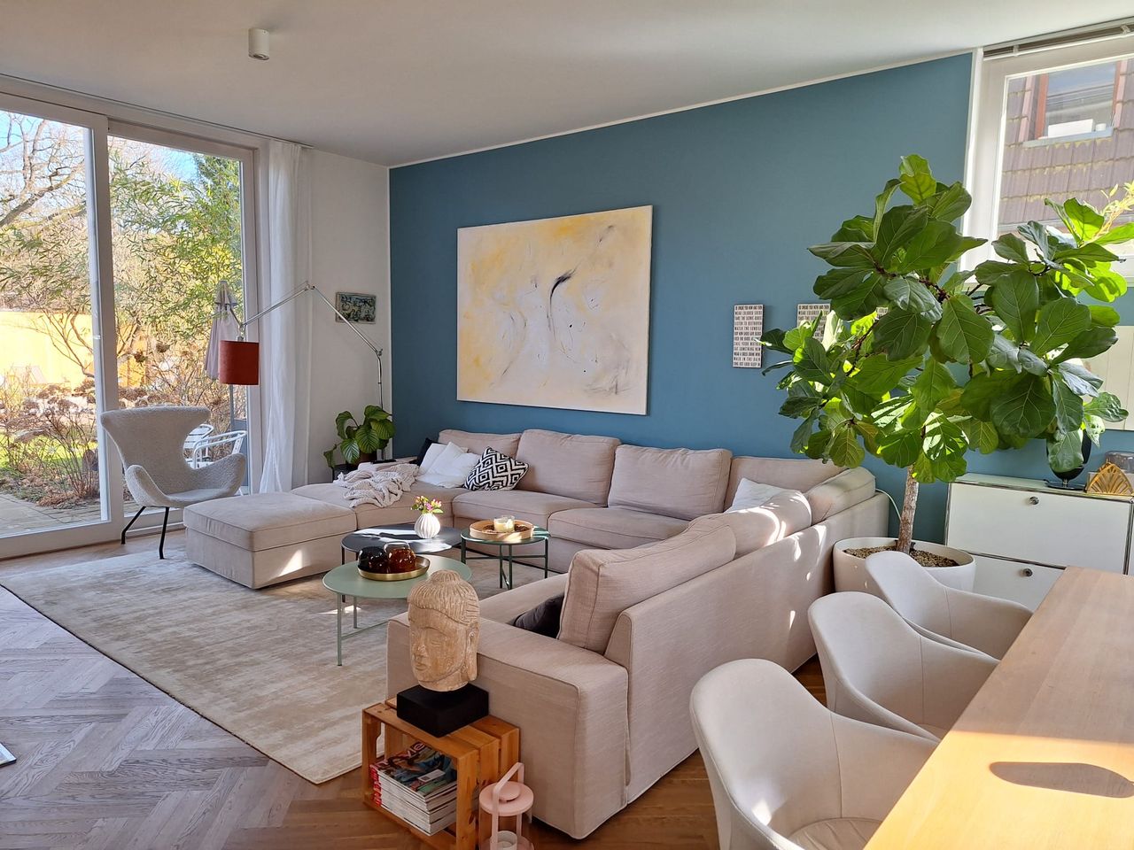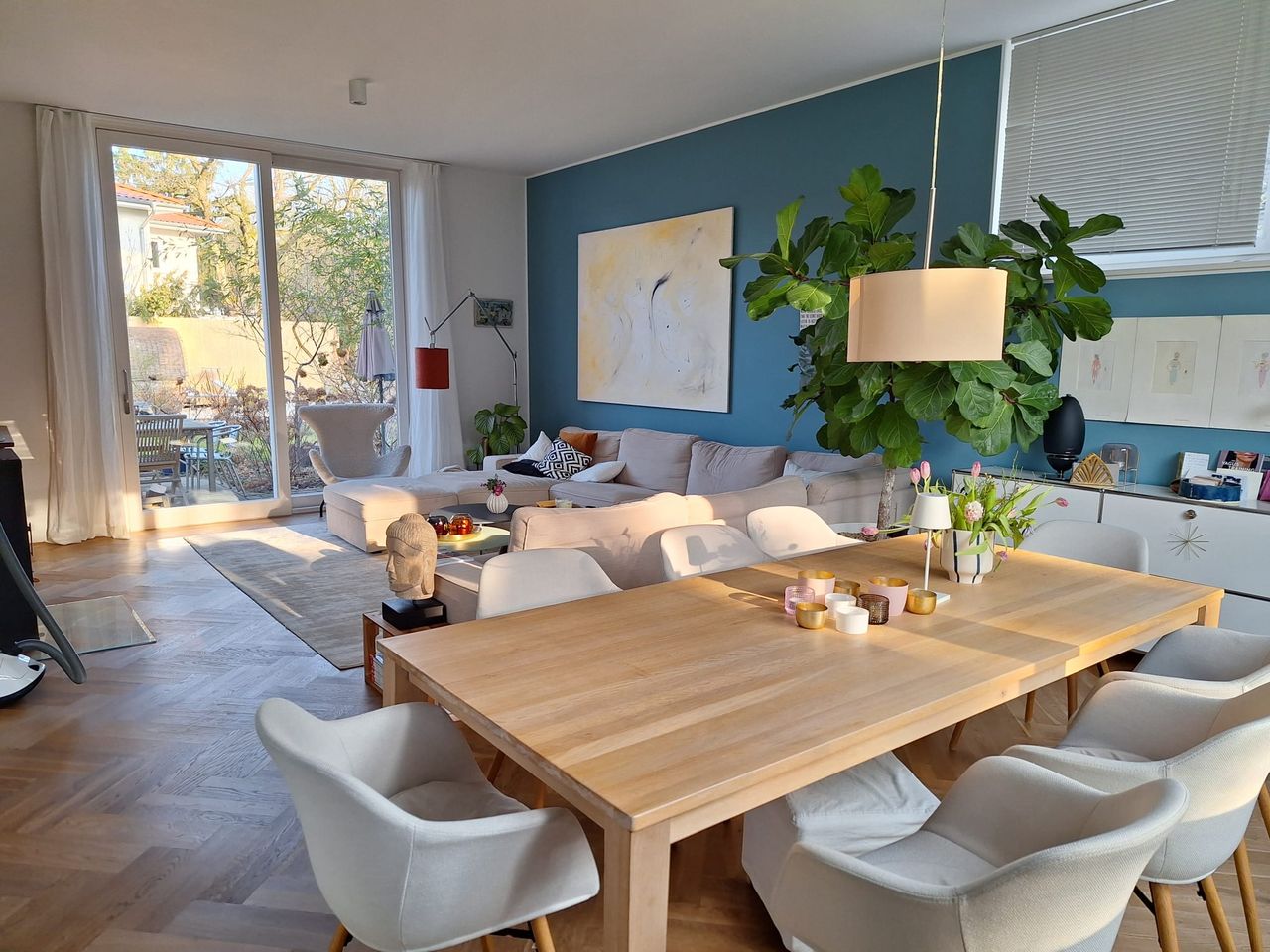 Die lichte Raumhöhe von ca.3,05m im Erdgeschoß und die Terrassenschiebetüren zum Garten in voller Raumhöhe ermöglichen gezielte Lichtführungen.