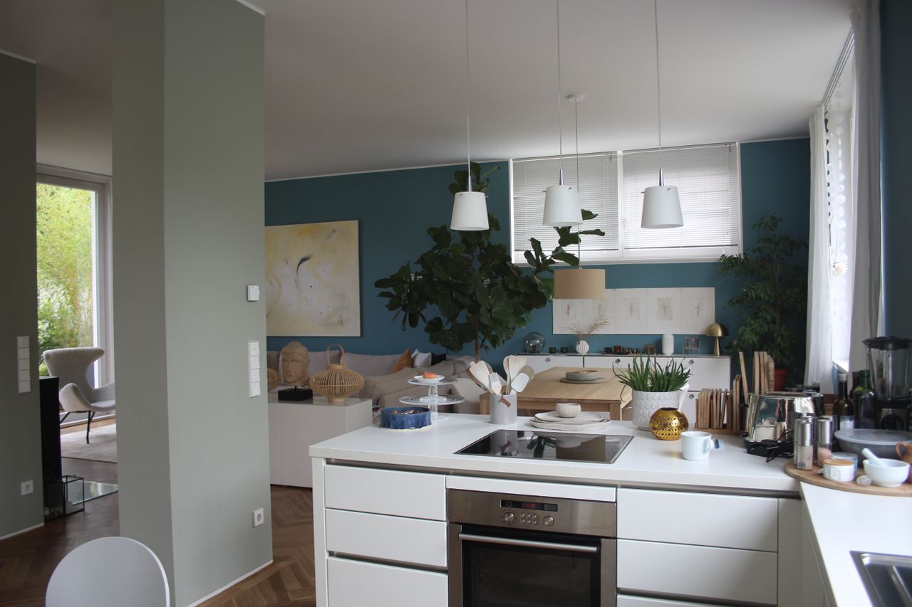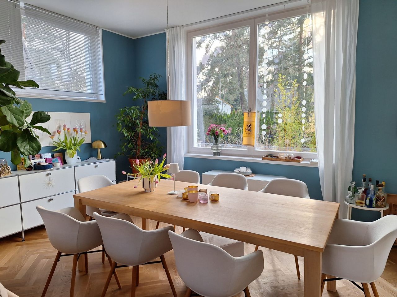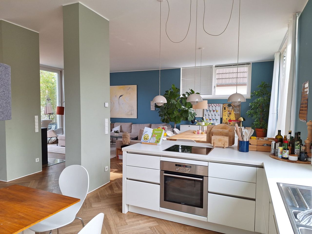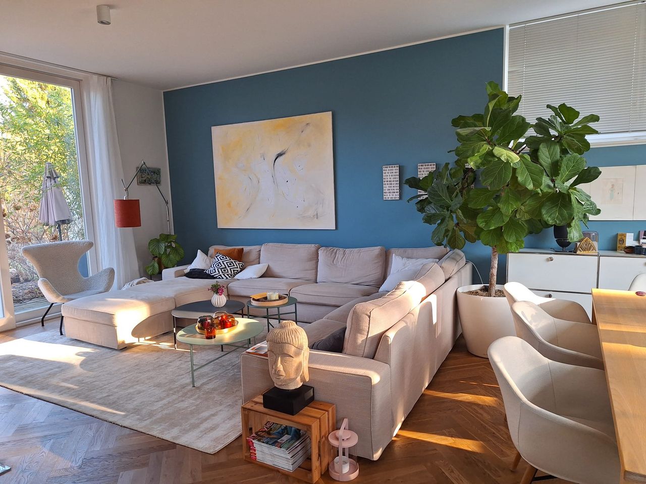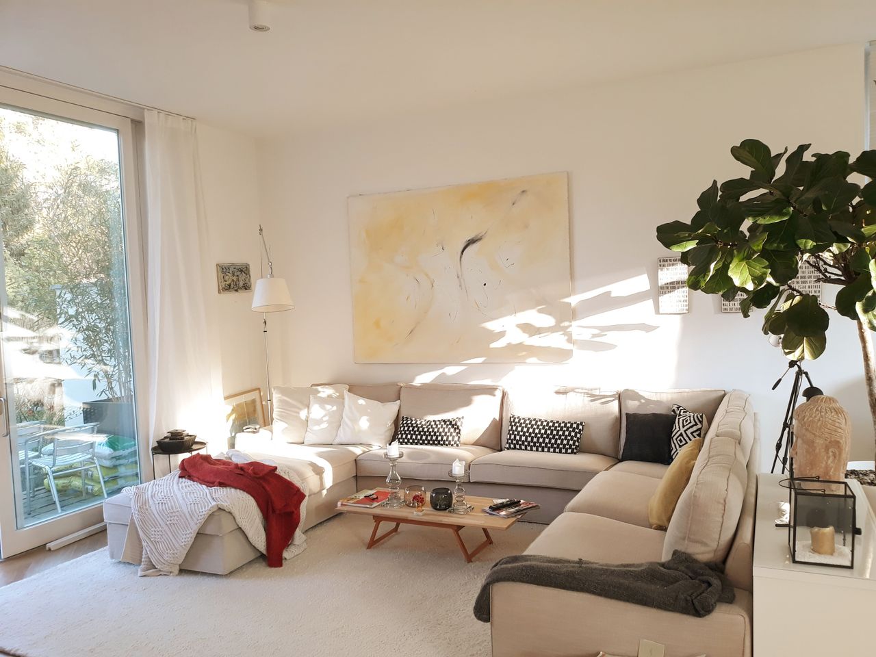 Die lichte Raumhöhe von ca.3,05m im Erdgeschoß und die Terrassenschiebetüren zum Garten in voller Raumhöhe ermöglichen gezielte Lichtführungen.