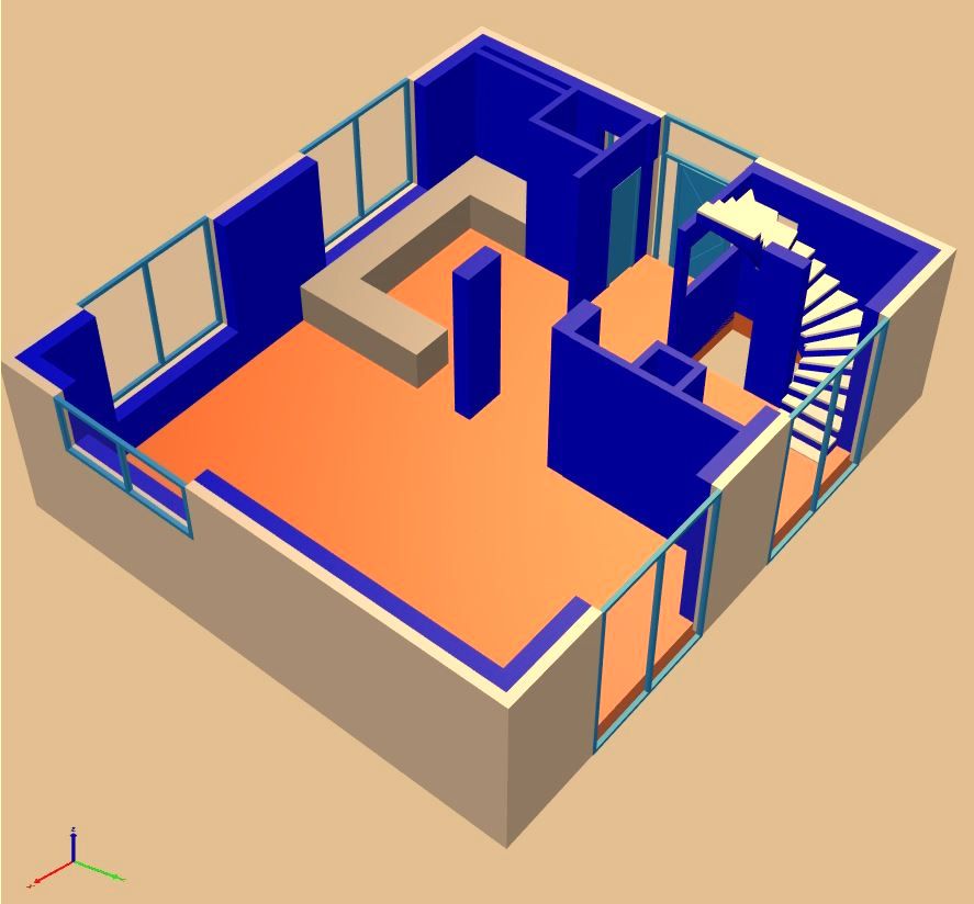 Das Haus zeichnet sich durch großflächige Erdgeschosszonen aus. Die verschiedenen Bereiche, Kochen, Essen und Wohnen gehen fließend und ohne Trennungen ineinander über. Ebenfalls sind sehr gut Szenen zum angelegten Garten und der Eingangssituation darstellbar.
