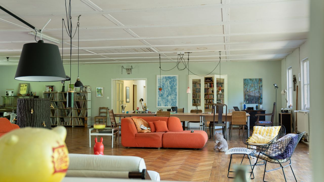 1 hour 15 minutes away from Berlin direction Frankfurt Oder, this is an old LPG house that was transformed by an artist and feels like a loft in the country side.