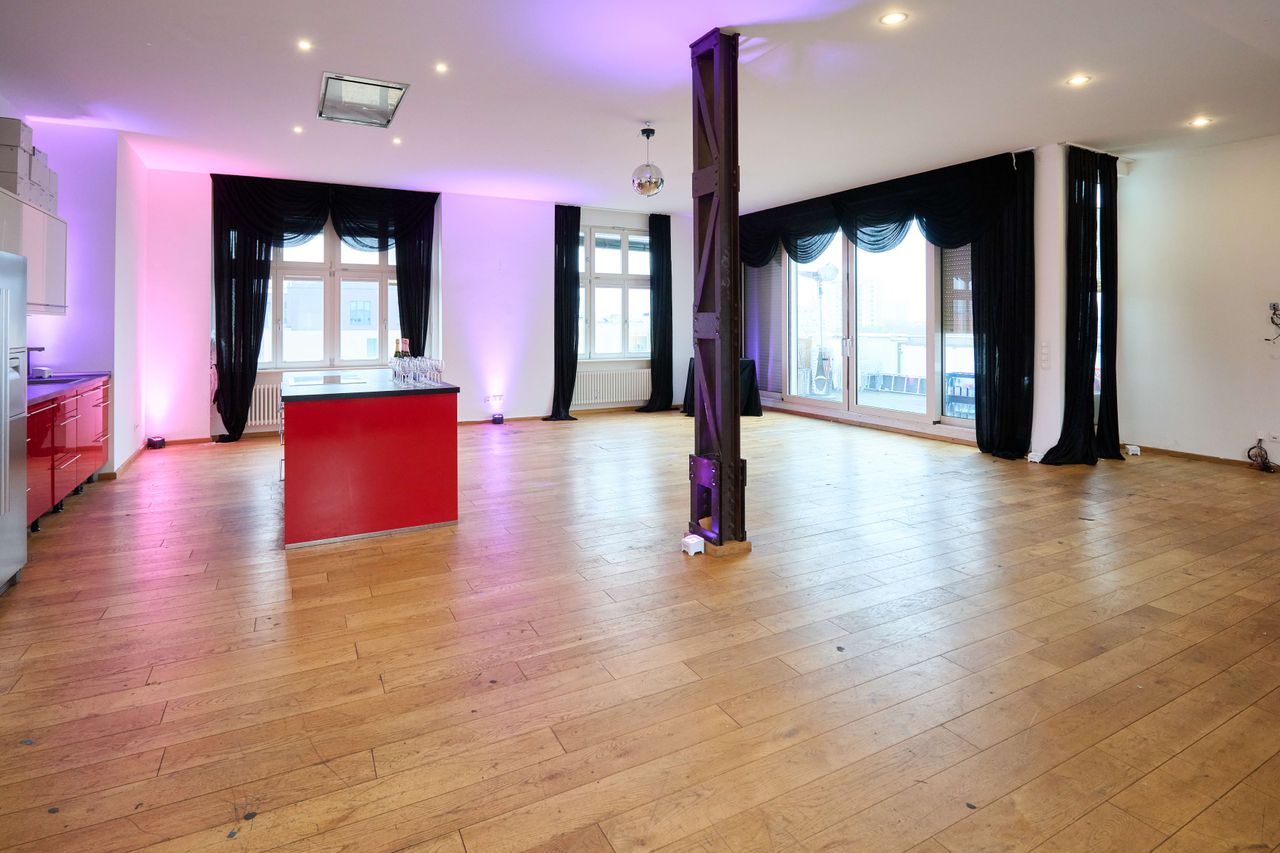 Mit bis zu 199 Teilnehmern oder auch in kleinen Gruppen, können Sie in einem einladenden Ambiente Ihre Veranstaltung in vollen Zügen genießen. Das Penthouse kann als freie Fläche, oder je nach Ausstattungswunsch, gegen einen Aufpreis gemietet werden. Der Kreativität sind keine Grenzen gesetzt.