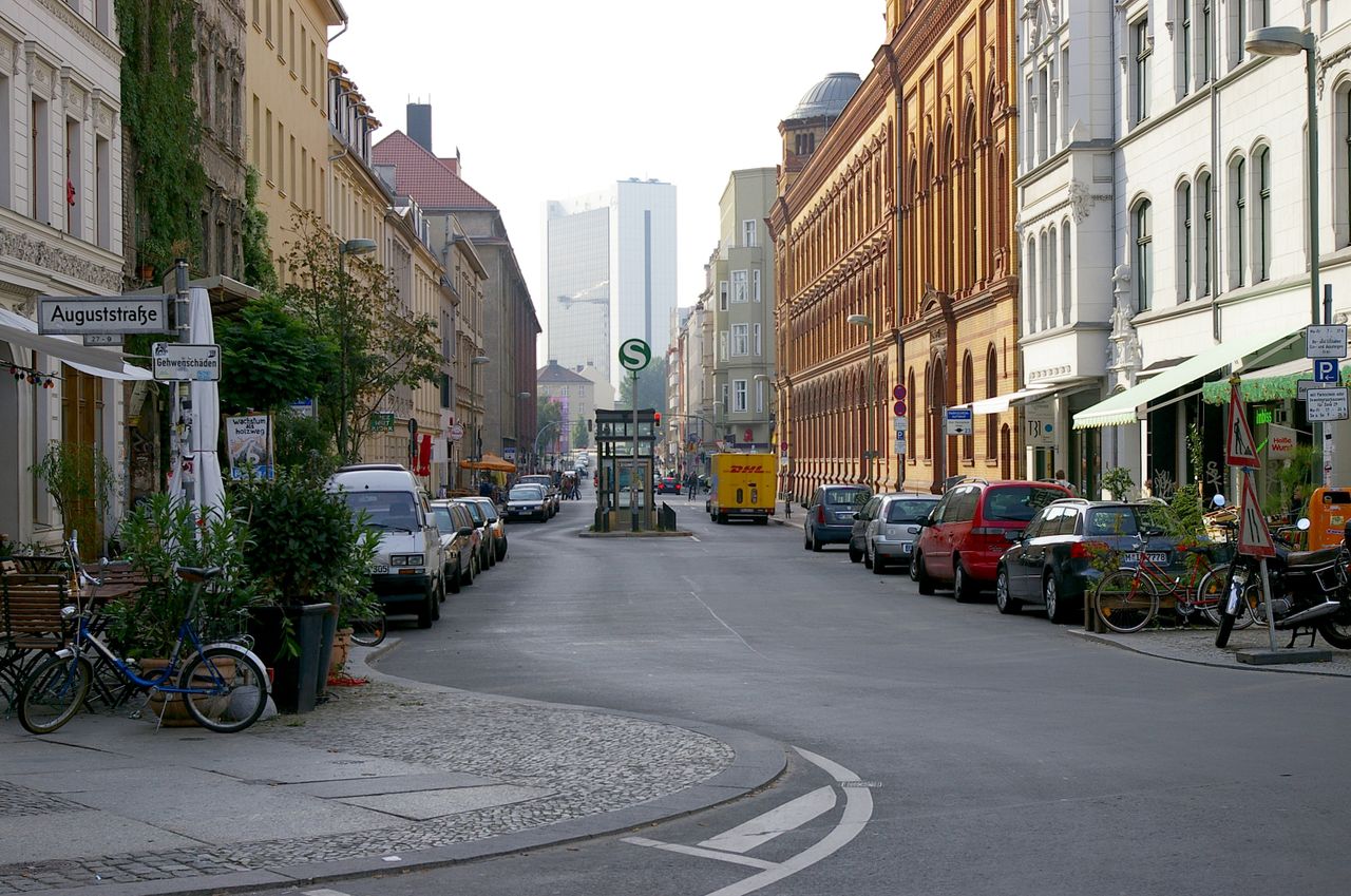 Szenestraße mit unzähligen Galerien, ältere Gebäude aus dem 18. Jahrhundert stehen neben moderner Architektur, topsanierte Häuser neben heruntergekommenen Fassaden.