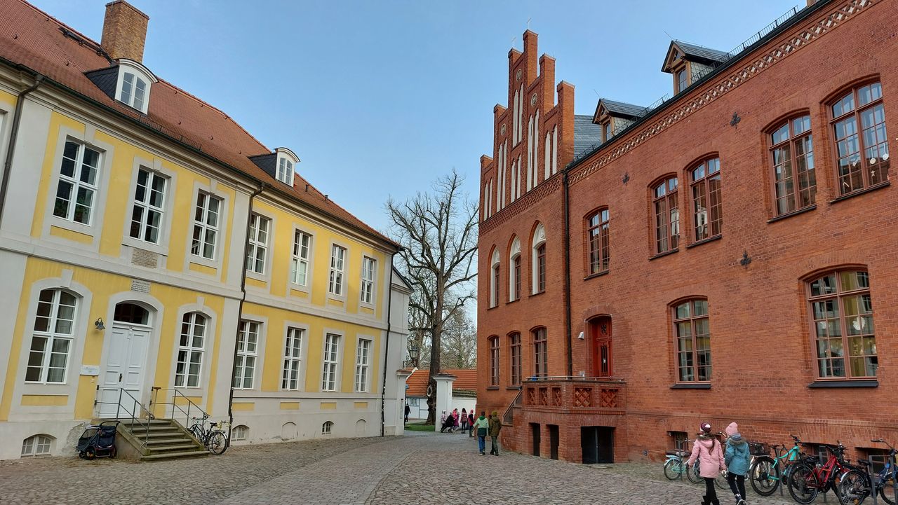 "Die Ritterakademie wurde 1705 als Schule für die Abkömmlinge des märkischen und pommerschen Adels gegründet. Auch heute noch befindet sich in dem Gebäudekomplex eine Schule. Die Aula befindet sich im Obergeschoss und diente als Fest- und Versammlungssaal, für die sie auch aktuell genutzt wird.