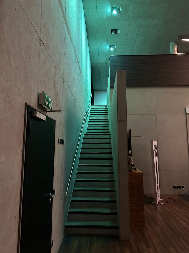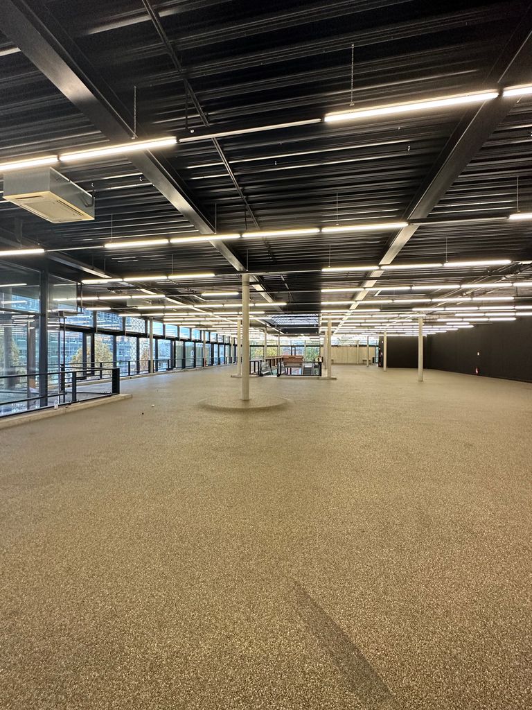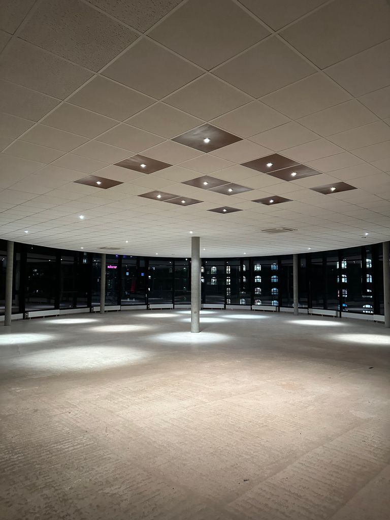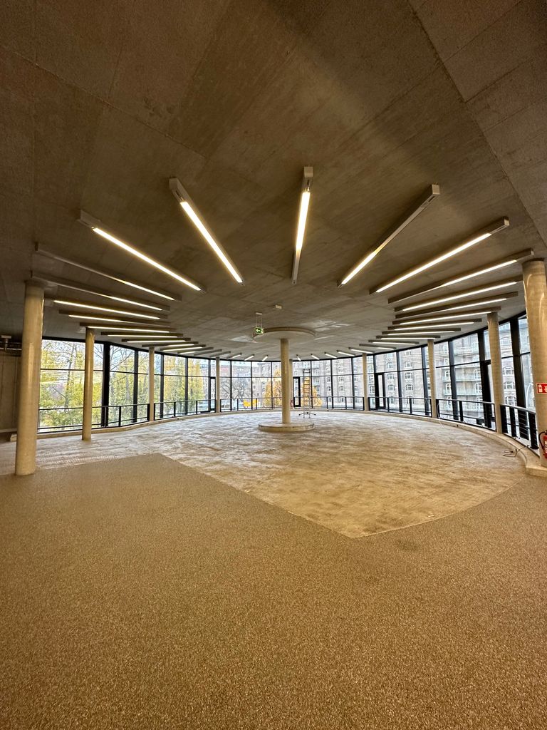 Das gesamte Gebäude, aus Beton gefertigt und mit weitläufigen Fenstern versehen, präsentiert sich in einer modernen architektonischen Ästhetik. Zahlreiche Bereiche innerhalb der Location bieten vielseitige Optionen.