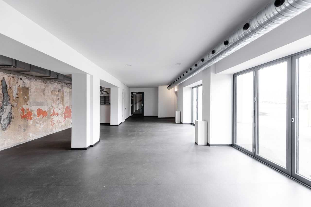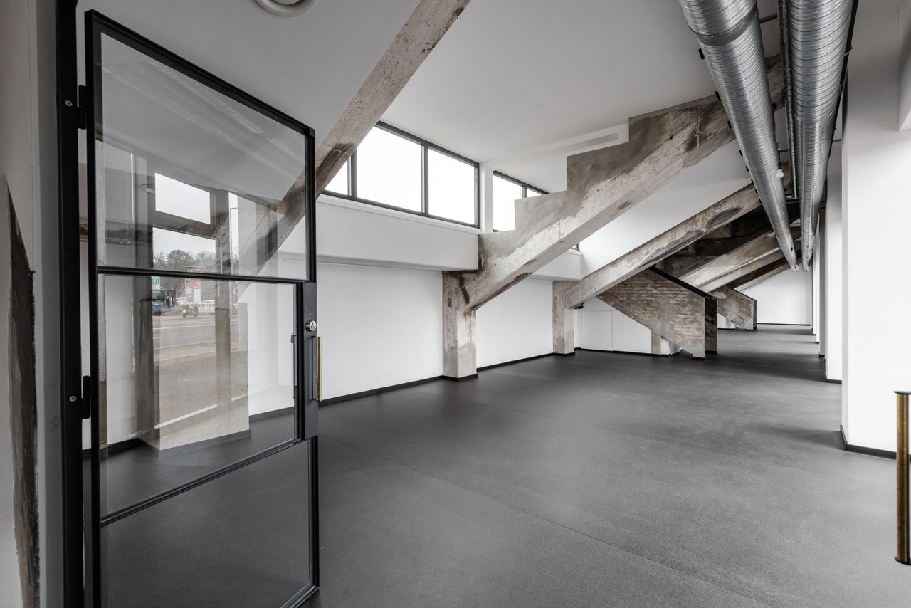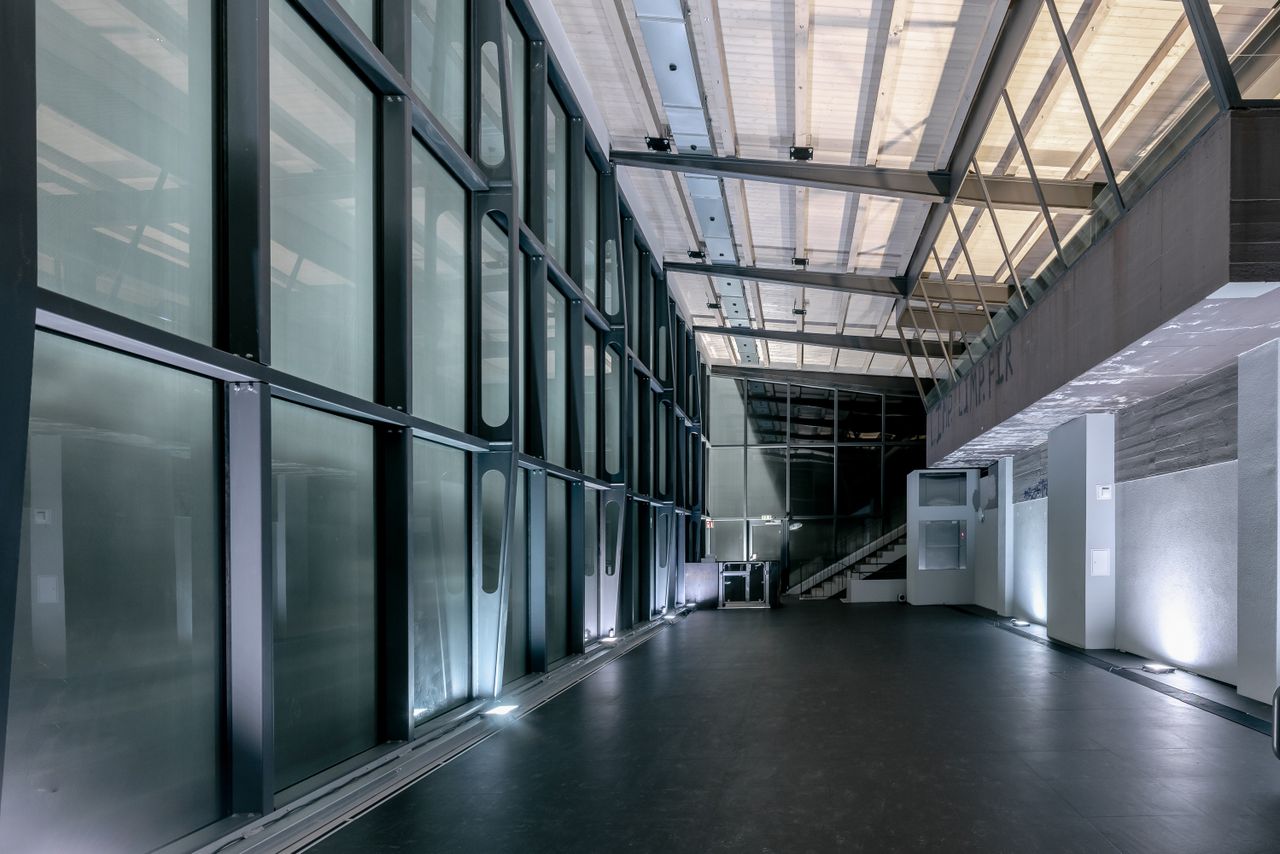 : Glass, Exposed concrete, Steel