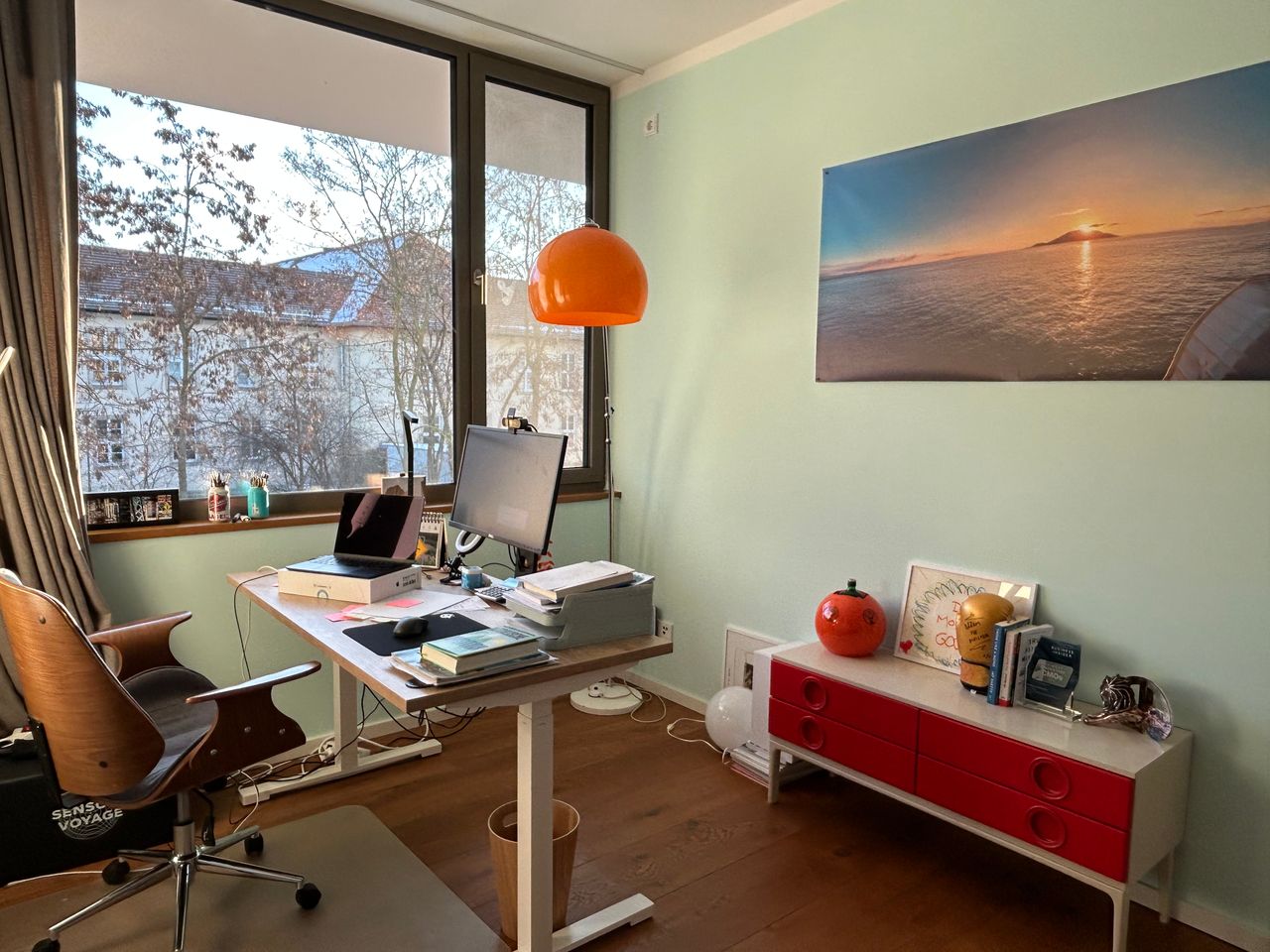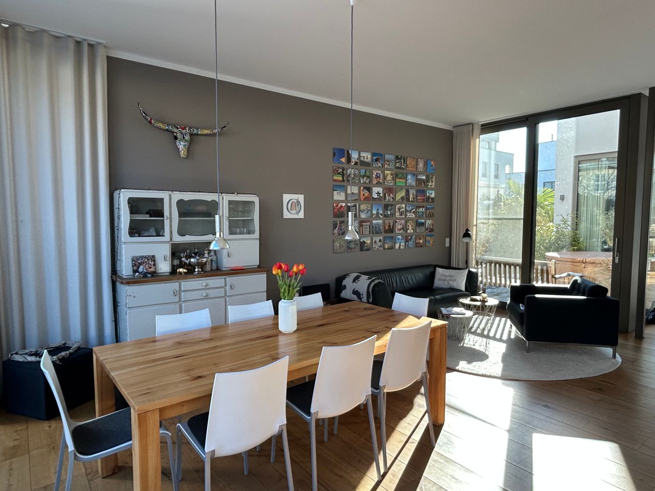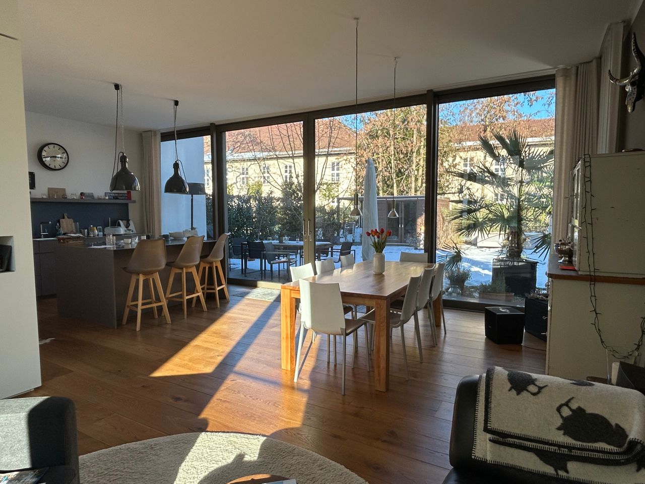 - Besonderes Merkmal: Lichtdurchflutet, freundlich und hell aufgrund der sehr hohen Decken und Bodentiefen, sehr großen Fenster